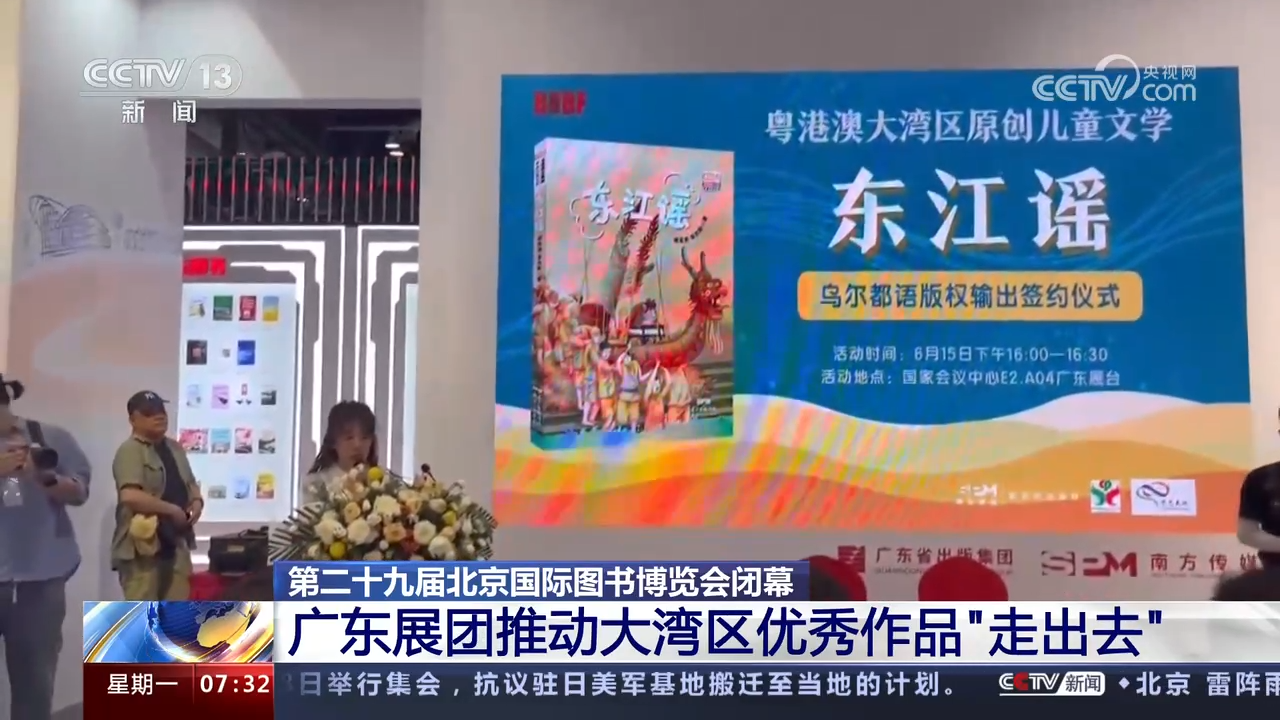 圖博會期間,《東江謠》的中方出版代表與巴基斯坦巴中環球出版社圖書版權貿易代表簽署了該作品的烏爾都語版權輸出協議,把優秀的中華傳統文化主題類作品引入巴基斯坦的童書市場。