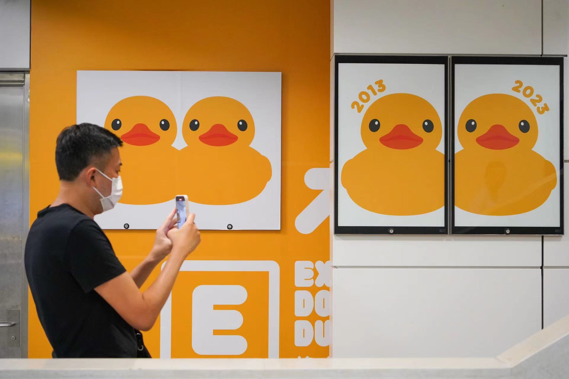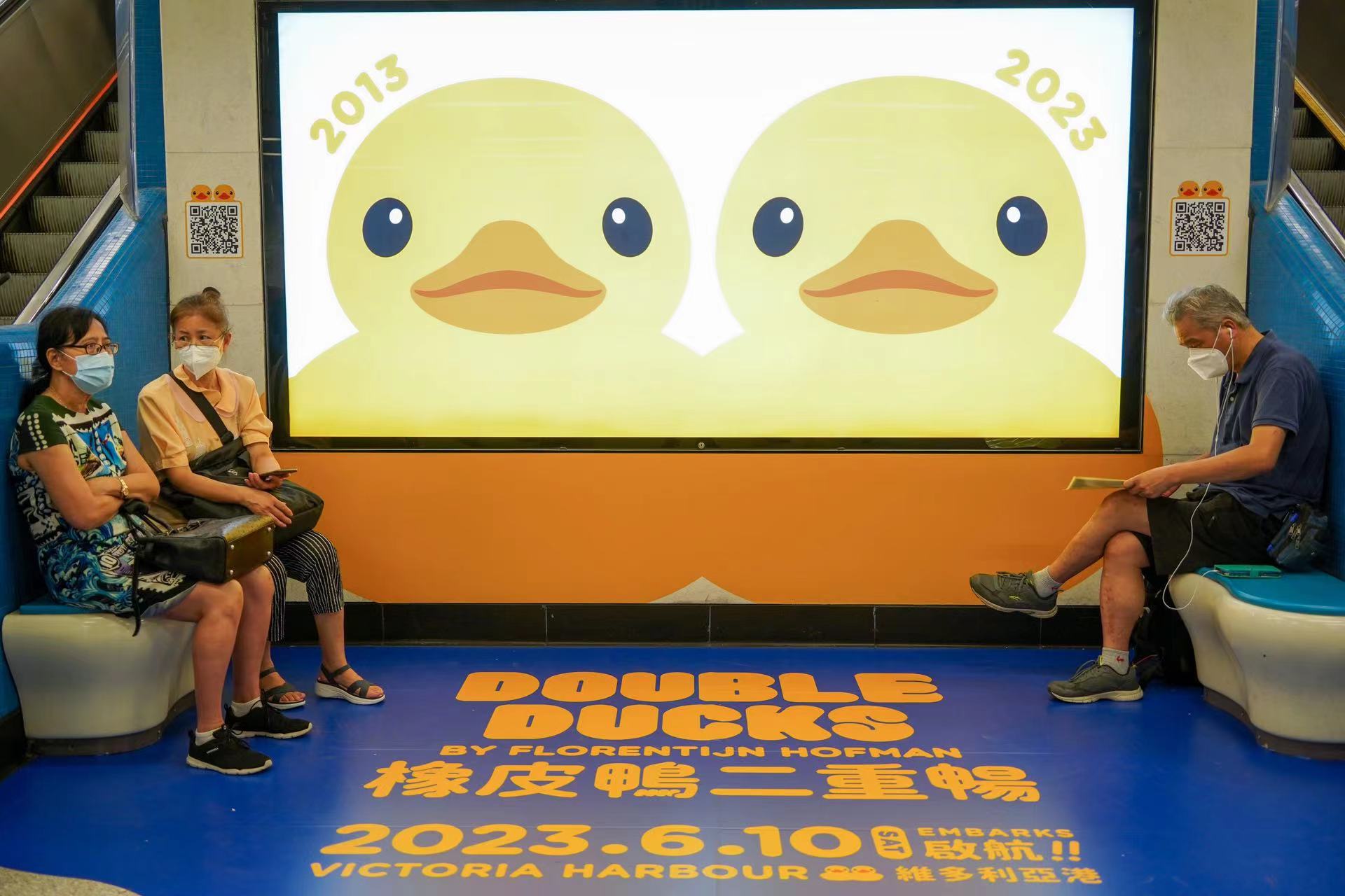大公文匯全媒體報道,時隔10年訪港的巨型橡皮黃鴨昨日(18日)結束在維港的展覽,兩隻黃鴨在市民依依不捨的告別中陸續退場。主辦方今日(19日)表示,橡皮鴨港鐵藝術旅程亦將於本周五(23日)結束。橡皮鴨軍團即將離開各個港鐵站,一眾鴨迷可把握機會,來一趟最後的尋鴨之旅喇!
