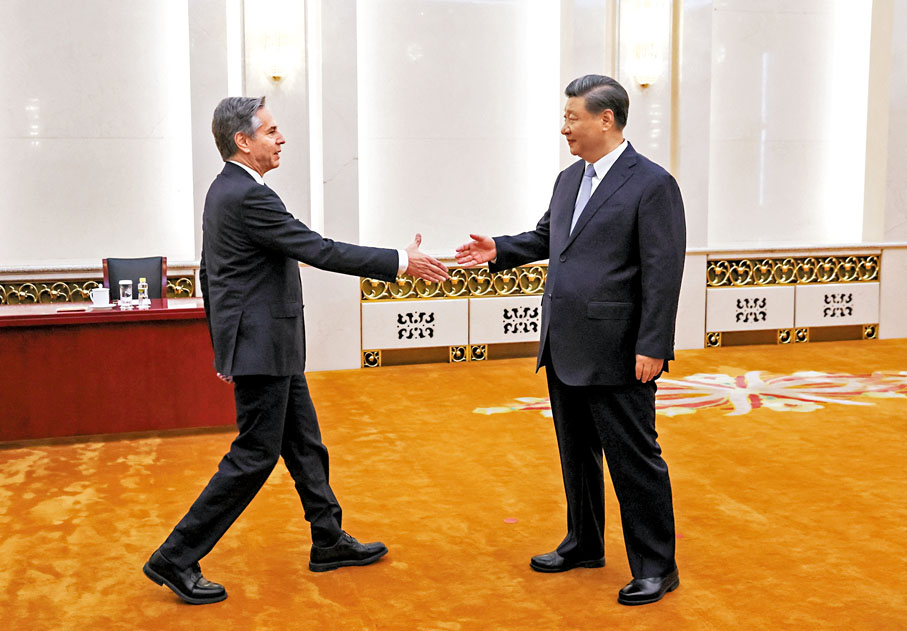 香港文匯報報道,美國國務卿布林肯為期兩天的訪華行程備受關注,昨日終於獲中國國家主席習近平會見。彭博社報道稱,中美這兩個全球最大經濟體正尋求穩定雙邊關係,這場會面意味着兩國關係可能從數十年來的最低點止跌回升,而習近平在接見布林肯時,更強調「雙方在具體問題上達成共識,這很好」。