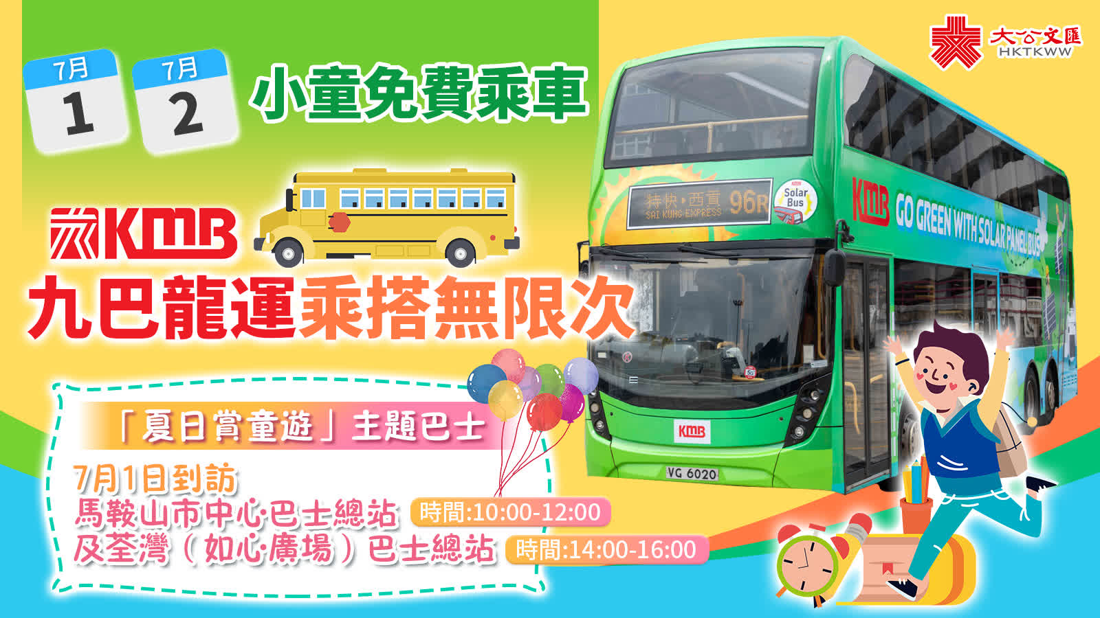 關鍵詞:夏日賞童遊九巴龍運免費乘車