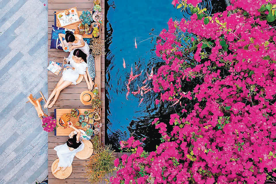 獨享青山綠水的漣岸湖居民宿(人均$227起)是國家甲級旅遊民宿,層高3.5米、面積45至55平方米的客房寬敞明亮、採光一流,湖景大床房更能欣賞到毫無遮擋的星湖美景,怎能不流連忘返?庭院內種滿鮮花多肉,池塘裏有錦鯉游弋,彷彿身處桃源。三樓設有茶室和觀景台,可瞭望星湖美景,亦可閱讀聽琴音,是文青療癒之選。