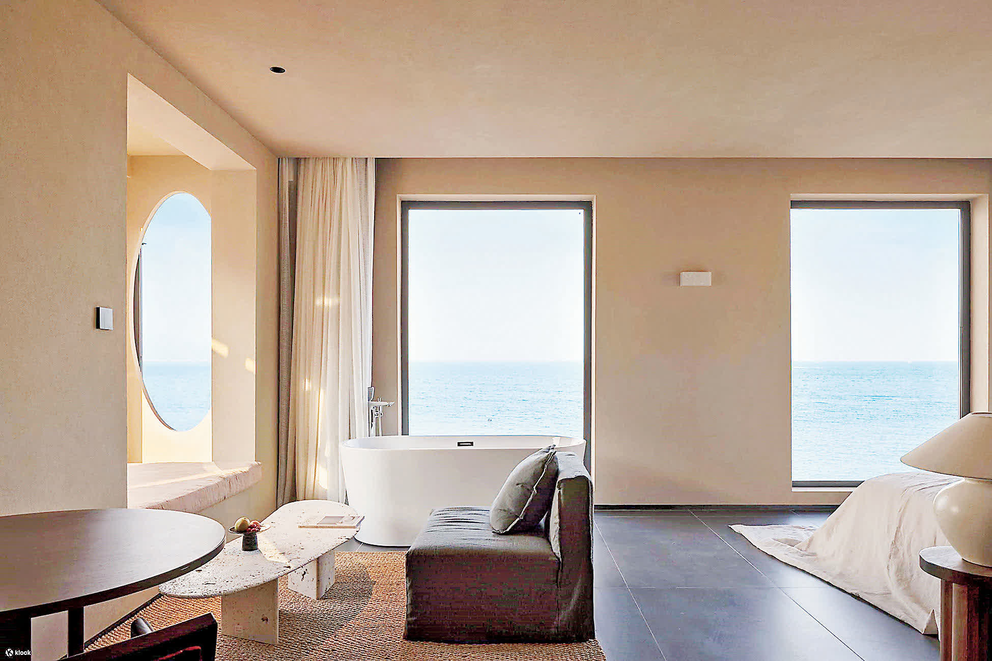 第一間推薦的深圳苫也·未名海度假海景民宿(人均$792起)坐落於南澳濱海半山處,由六棟白色外牆建築組成,呈村落式分布於繁茂的荔枝林之中,遺世而獨立。民宿巧妙地融入侘寂美學,為住客營造一個遠離煩囂、療癒身心的寧靜棲所。部分客房設有私人泳池、開放式廚房等,房內使用的是金可兒定製床墊、帕爾瑪之水洗浴用品等,各種細節全面提升住宿體驗。