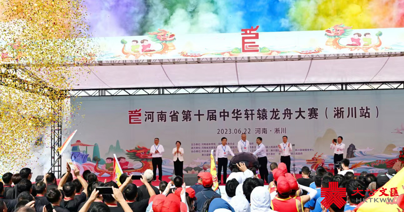 當日,為期兩天的河南省第十屆中華軒轅龍舟大賽(淅川站)開幕,一條條色彩斑斕的龍舟的披紅、點睛,如離弦之箭,蓄勢待發。參加200米直道競速的各參賽隊喊着整齊的號子,和着鼓聲,動作整齊劃一,齊心協力,奮力划槳,向終點衝刺。鸛河兩岸人聲鼎沸,助威的歡呼聲、口號聲和龍舟上的鑼鼓聲連成一片。