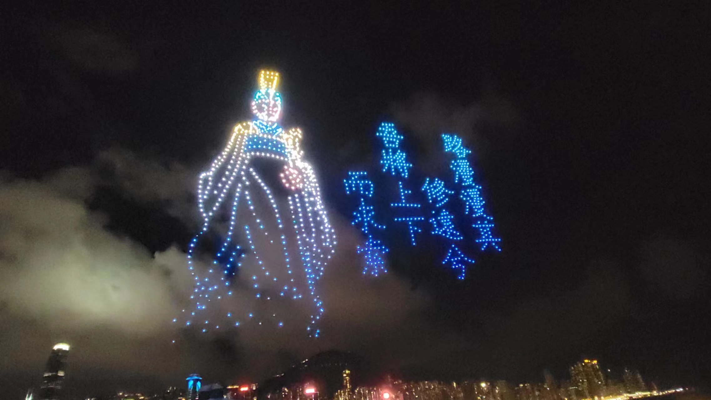 據了解,這是香港最大規模的無人機燈光表演,亦是首次在維港過過光影藝術展現端午民俗,期望通過傳統文化與現代科技的完美結合,為香港市民帶來獨特的民俗體驗,送上傳統的節日祝福。