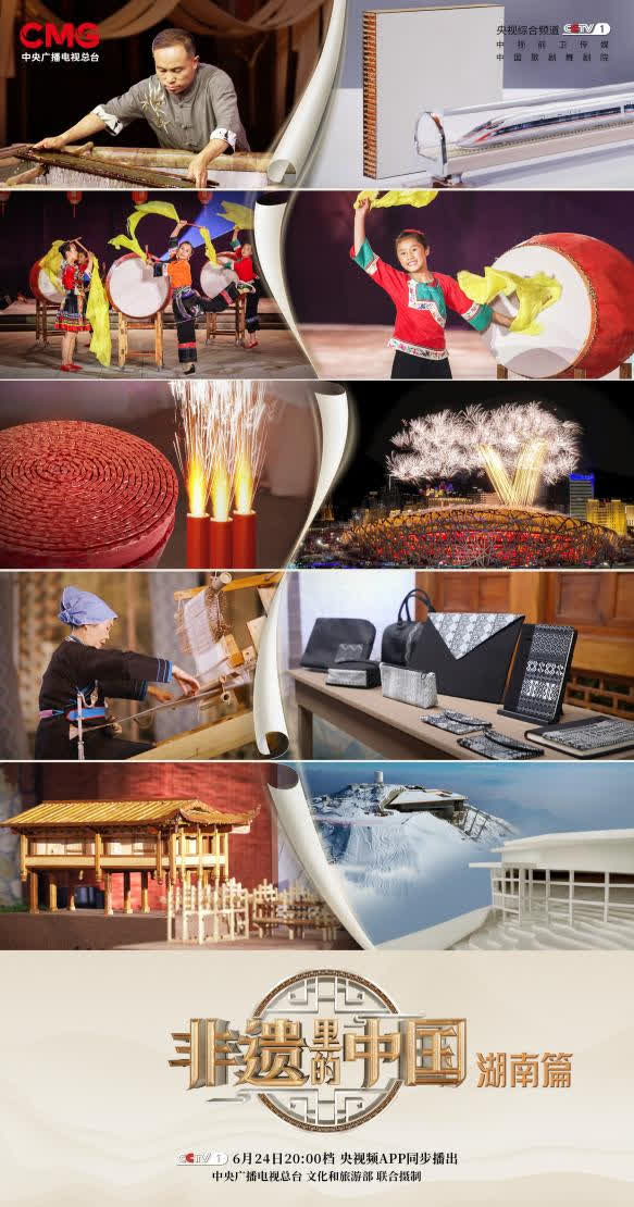 暢遊自然山水,體味人間煙火,品味非遺之美,見證時代新貌!踏上自然環境得天獨厚,歷史文化底蘊深厚的湘楚大地,這裏的非遺會給帶給我們怎樣的驚喜與震撼?6月24日,中央廣播電視總台與文化和旅遊部聯合攝製的大型文化節目《非遺裏的中國》將在20:00檔於央視綜合頻道(CCTV-1)播出,央視頻全網獨家首播,開啟一場精彩紛呈的「湘」遇非遺之旅!