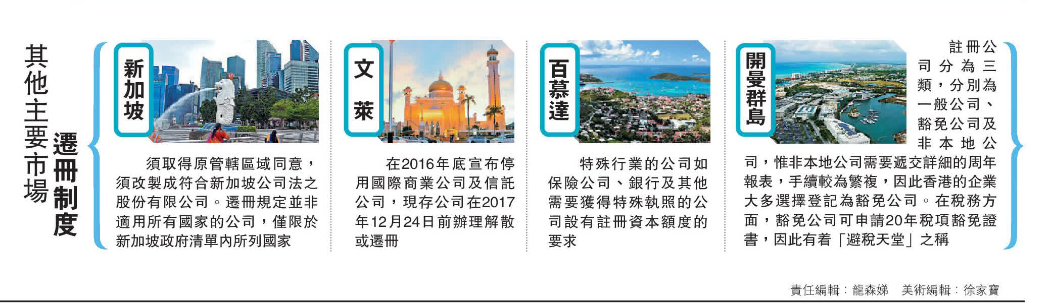 企業遷冊的原因,往往是新的註冊地有更佳的發展機遇,或具稅務優惠、人才優勢等對企業有利。同時,企業要考慮法律因素,一般商業活動會在合約上訂明,如有訴訟需按公司註冊地的法律來執行,若該註冊地的法律與交易方的國家或地區有重大法制分別,或影響商業運作。