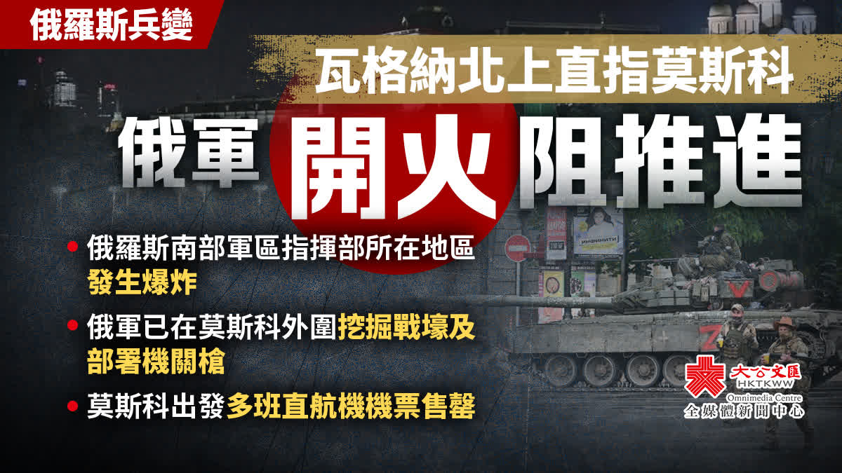大公文匯全媒體報道,俄羅斯僱傭兵組織瓦格納集團(Wagner Group)創辦人普里戈任(Yevgeny Prigozhin)6月23日發表視像講話,炮轟俄軍高層,指他們的營地被俄羅斯國防部攻擊,造成巨大損失,稱旗下成員已由烏克蘭返回俄羅斯,準備「對抗」俄軍。瓦格納集團現已進入羅斯托夫,和俄軍發生激戰。