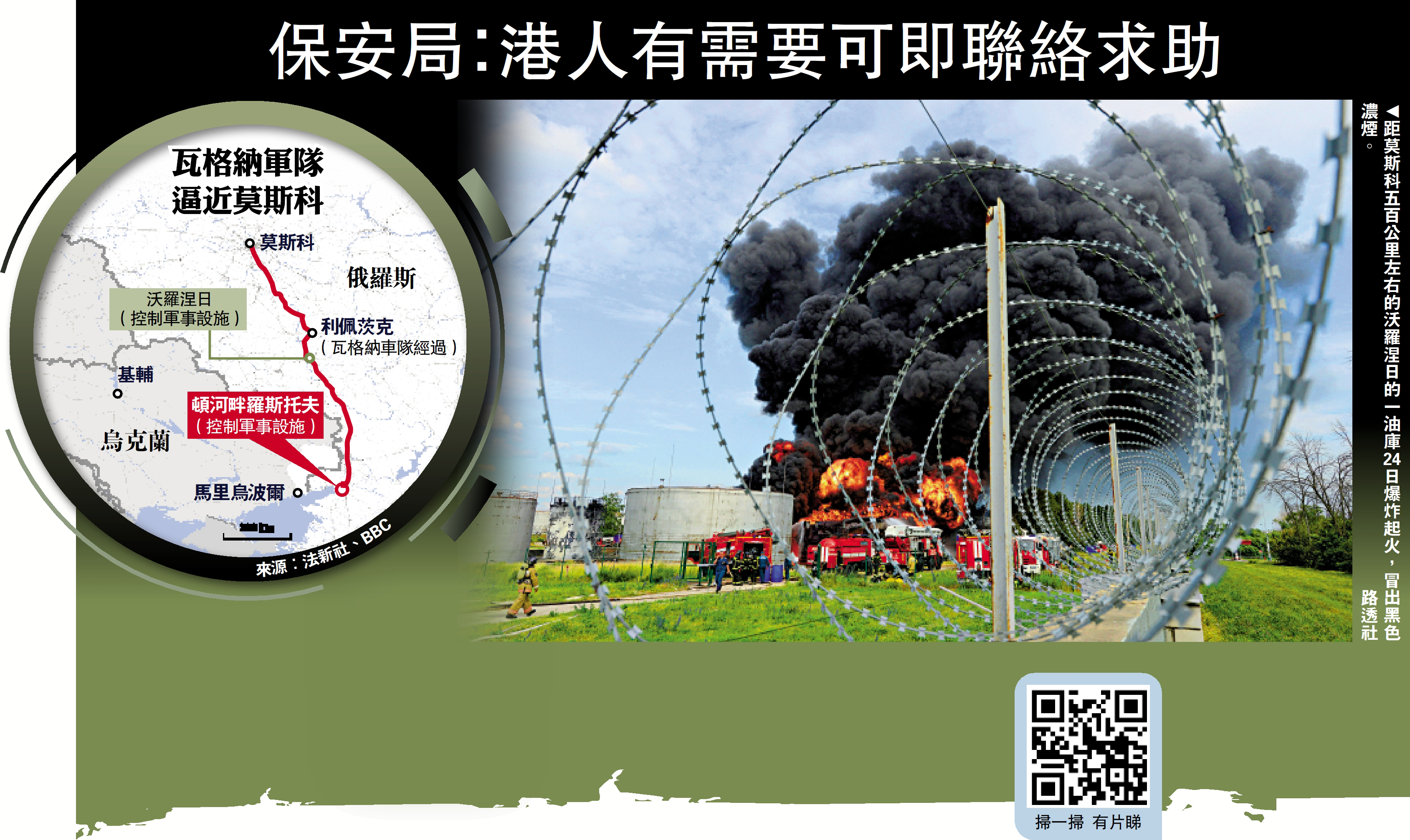 香港保安局昨晚表示,當局正密切留意當地情況,如有需要會透過媒體、保安局流動應用程式,以及外遊警示網頁,發布當地最新情況。入境處表示,接獲兩名身處俄羅斯的港人查詢,已即時提供相關資訊,並將個案轉介中國駐俄大使館跟進。