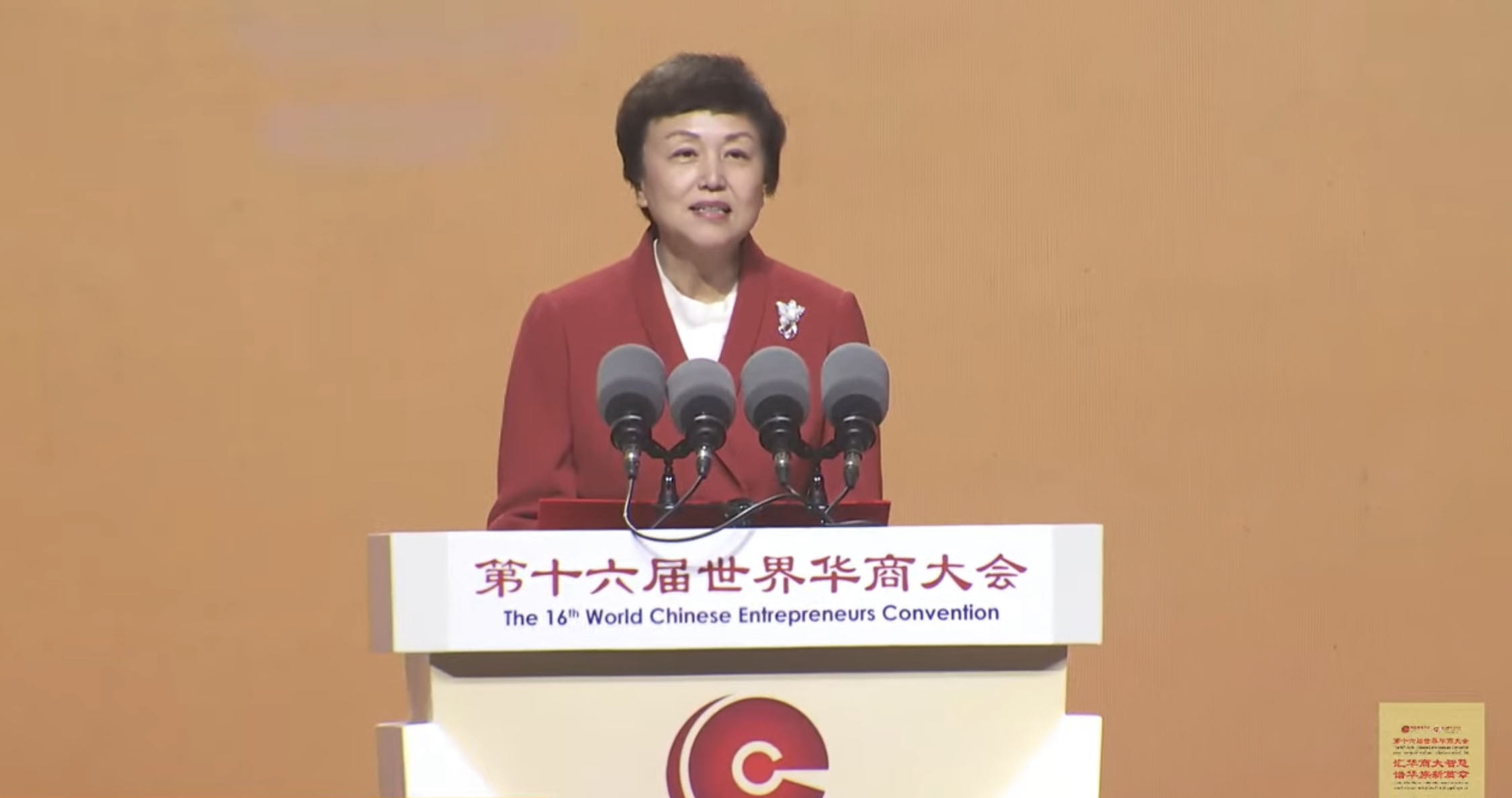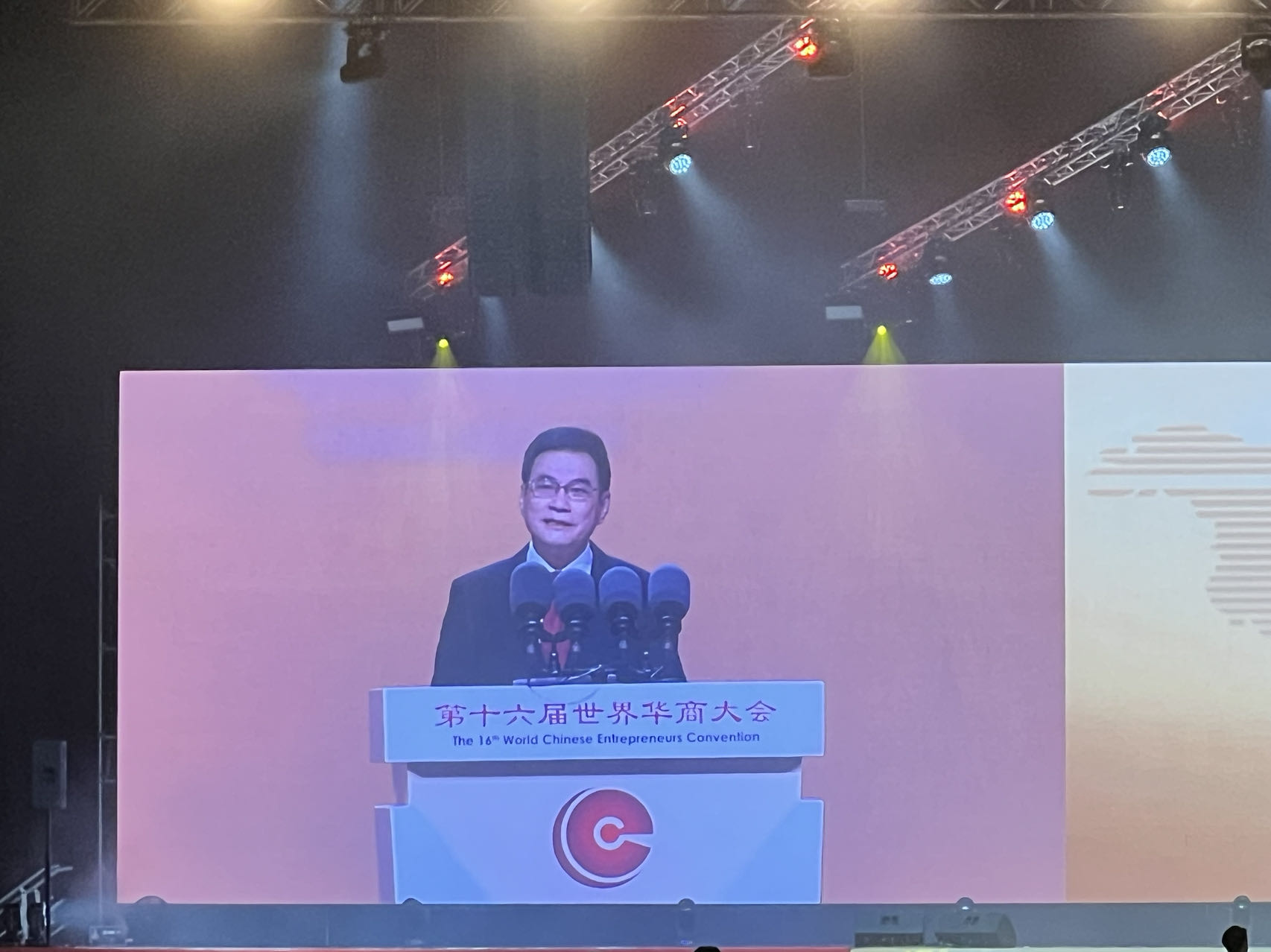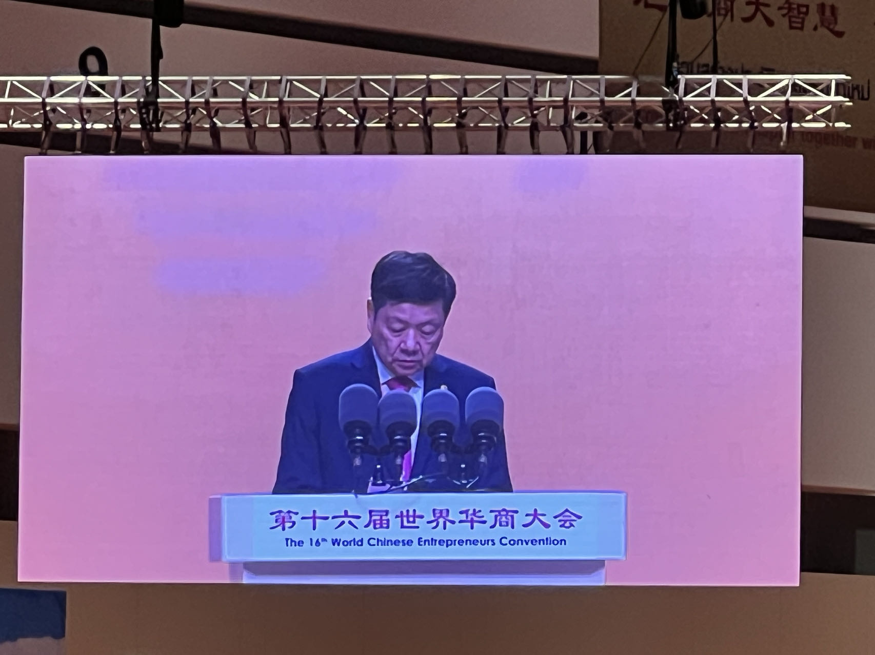 中國全國工商業聯合會主席高雲龍致辭表示,華商既是世界各國的寶貴財富,也是中華民族的獨特優勢。回首往昔,一代又一代華商用勤勞與智慧,在人類商業文明史上寫下了生動的篇章,在「一帶一路」建設中結出了甜美的碩果。展望未來,促進世界和平與中外友好、促進全球發展與合作共贏、促進中外交流與文明互鑒,呼喚華商更大擔當與作為。相信廣大華商一定能夠發揮融通中外、匯通東西的獨特優勢,攜手同心、共創未來,在構建人類命運共同體、推動經濟全球化不斷向前的新征程上創造新的輝煌。中國向世界敞開懷抱,開放的大門只會越開越大。中國將為華商創造更多大顯身手的舞台,歡迎大家繼續抓住中國發展機遇,共享中國現代化建設成果。
