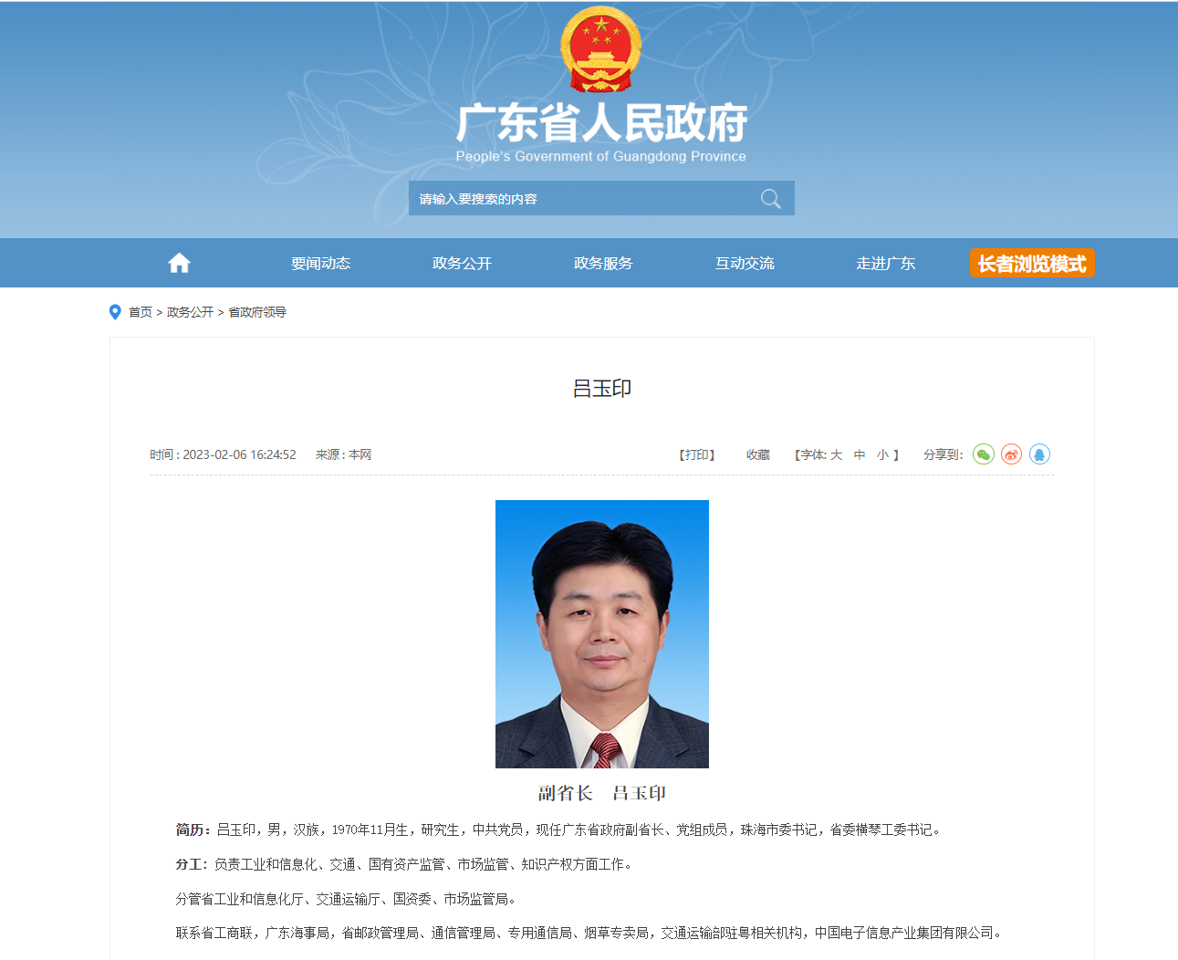 公開資料顯示,呂玉印於1998年到深圳工作,先後擔任深圳市委副秘書長、辦公廳主任,深圳市龍崗區委副書記、區長,深圳市坪山區委書記,深圳市福田區委書記,2019年當選肇慶市市長,後任肇慶市委書記,2021年12月任珠海市委書記。今年1月,呂玉印升任廣東省副省長,後繼續兼任珠海市委書記,直至此次調整。