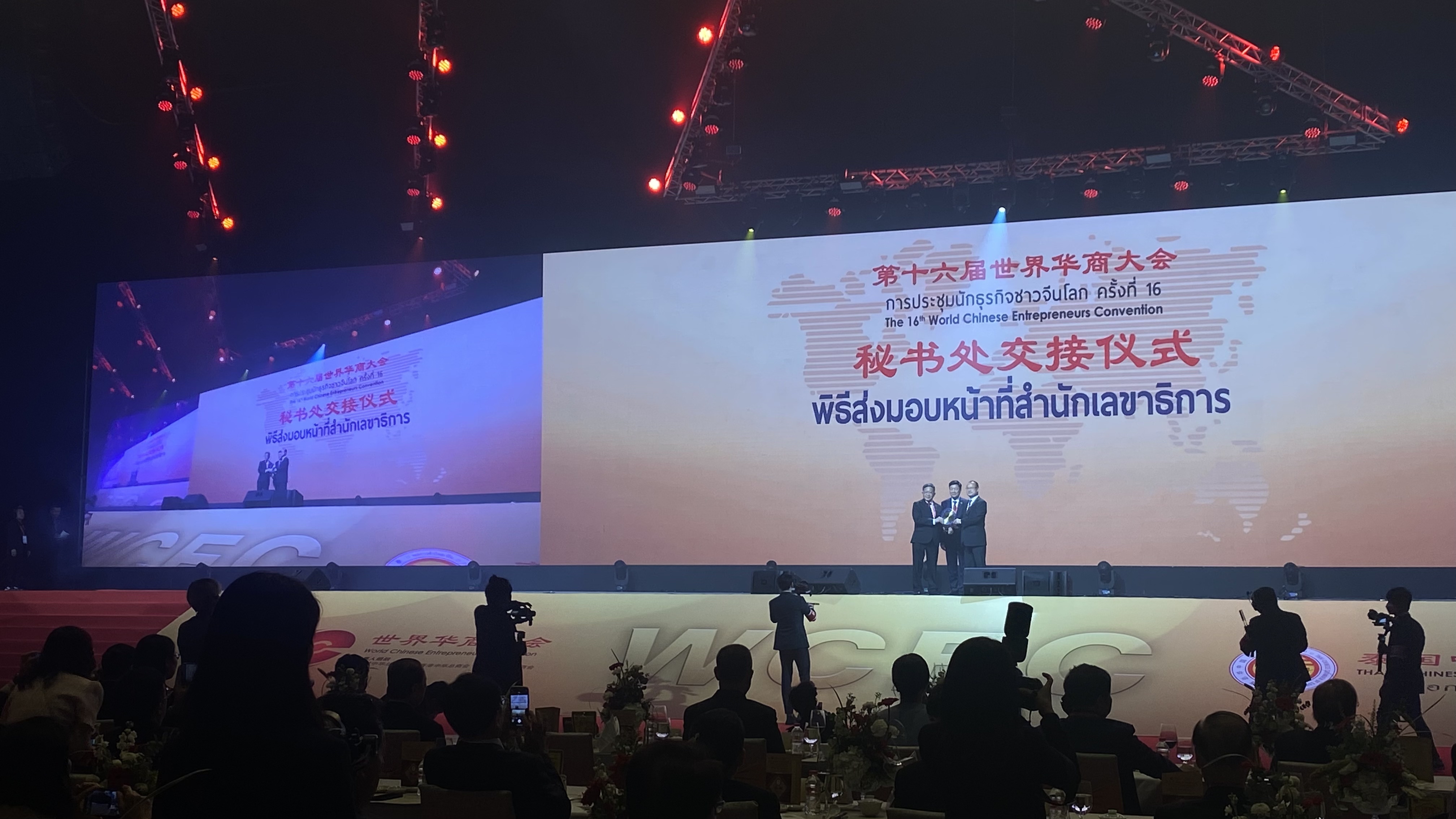 (大公文匯全媒體記者 陳風 泰國曼谷報道)第16屆世界華商大會(WCEC)今(26日)晚在曼谷詩麗吉國家會議中心成功閉幕。閉幕式典禮上,泰國中華總商會向馬來西亞中華總商會移交了下一屆世界華商大會的主辦權。同時,香港中華總商會從新加坡中華總商會「接棒」,將擔任世界華商大會秘書處。