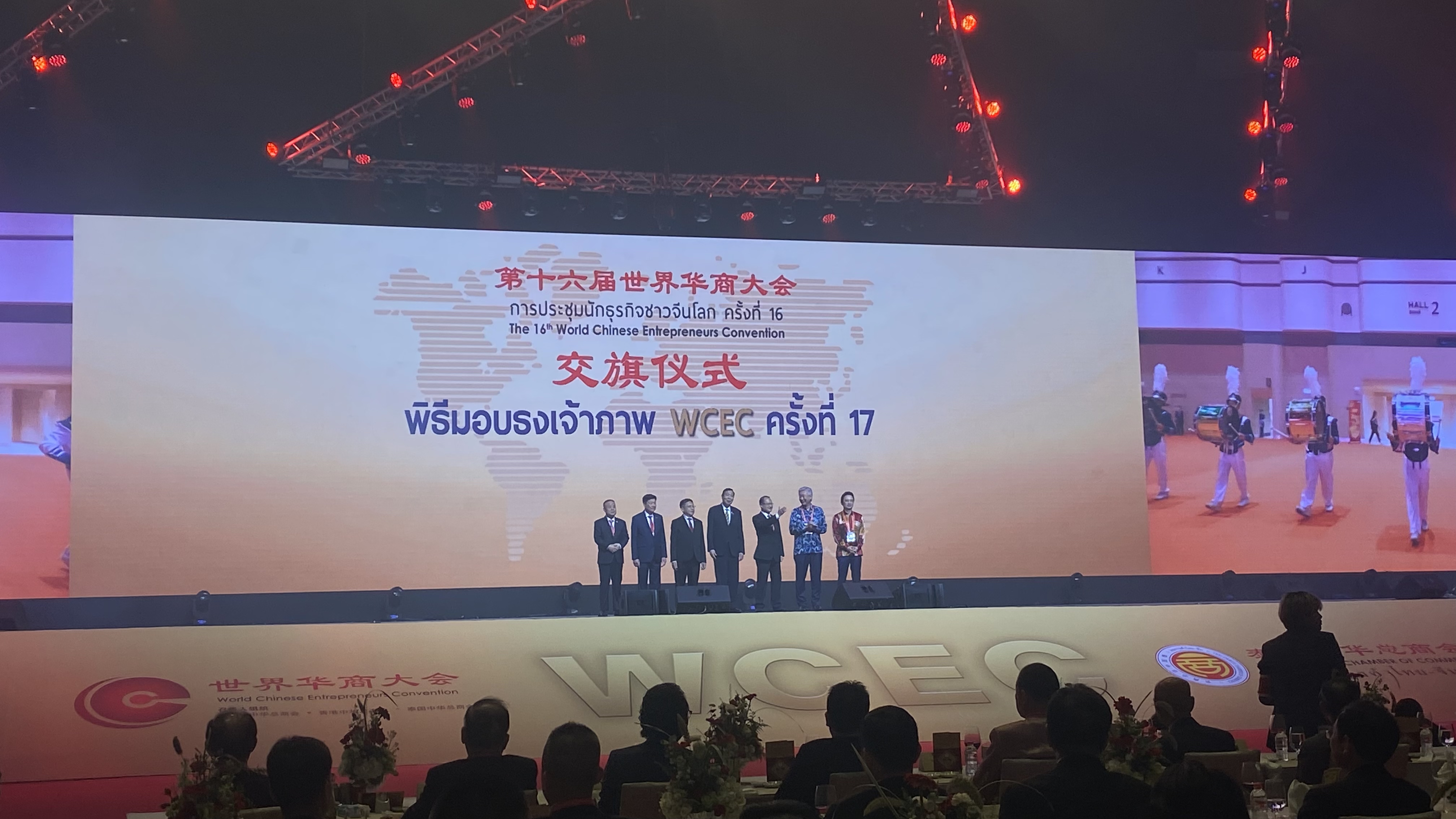 在接下來的世界華商大會會旗交接儀式中,馬來西亞中華總商會從泰國中華總商會手中,接過了下一屆世界華商大會的主辦權。世界華商大會秘書處、香港中華總商會主席蔡冠深宣布:第十七屆世界華商大會將於2024年由馬來西亞中華總商會在吉隆坡主辦。