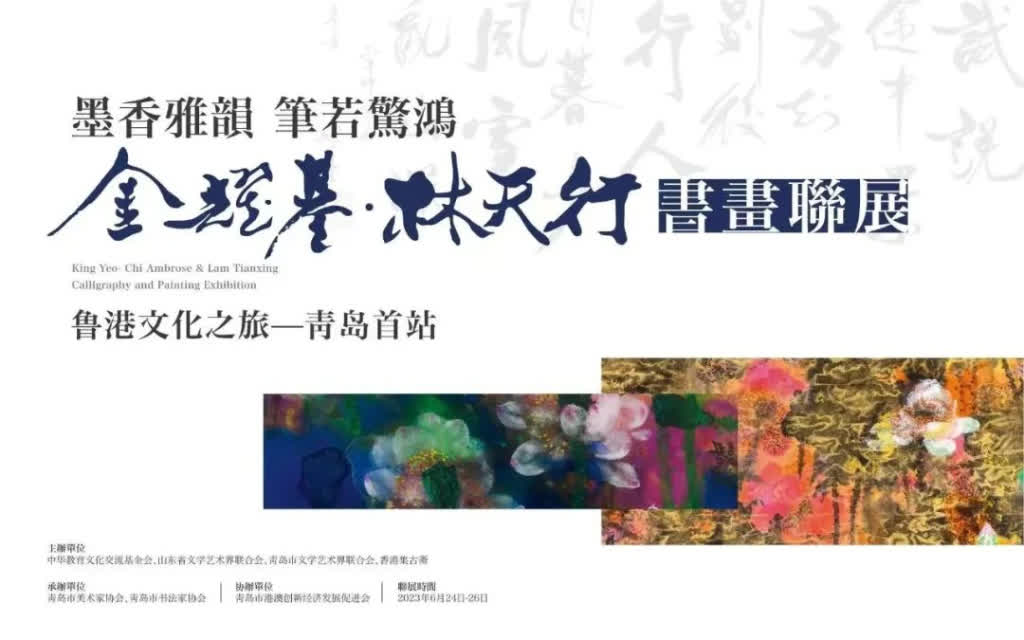 「魯港文化之旅」系列活動青島首站「墨香雅韻 筆若驚鴻」金耀基·林天行書畫聯展開幕式2023年6月25日在青島市美術館成功舉辦。眾多來自山東、香港兩地的領導、書畫家、文化藝術界人士、個人藏家、商企代表等齊聚一堂。