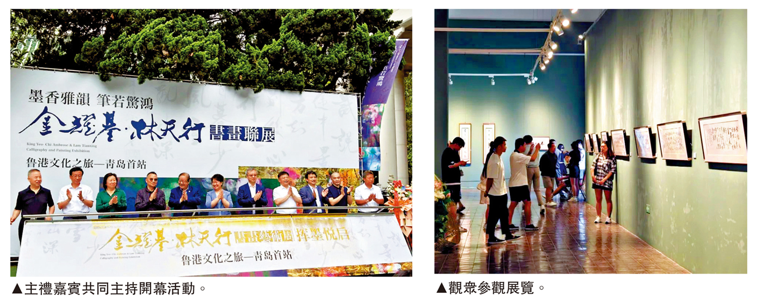 「魯港文化之旅」系列活動青島首站「墨香雅韻 筆若驚鴻」金耀基·林天行書畫聯展開幕式,日前在青島市美術館舉行。來自山東、香港兩地的文化藝術界人士、個人藏家、商企代表等齊聚一堂。