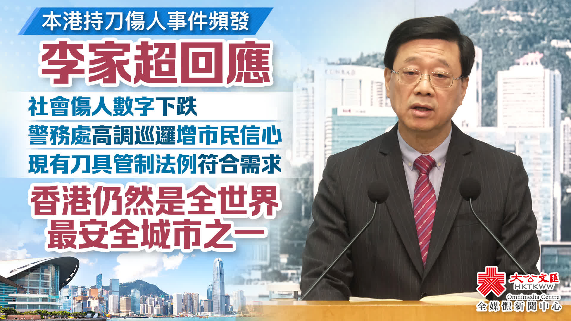 至於刀具管制方面,李家超強調,本港現有刀具管制法例符合香港需求,行之有效,平衡日常需要,香港仍然是全世界最安全的城市之一。