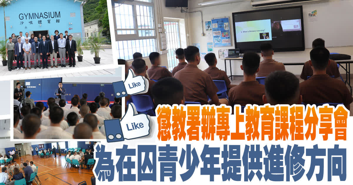 大公文匯全媒體報道,懲教署昨日在沙咀懲教所舉辦專上教育課程資訊分享會,希望透過是次活動,為有志繼續學業及持續進修的青少年在囚人士提供更清晰的進修方向,同時亦讓在囚人士感受到社會人士,包括各大學院校對他們的支持,加強他們修讀大學課程的決心。