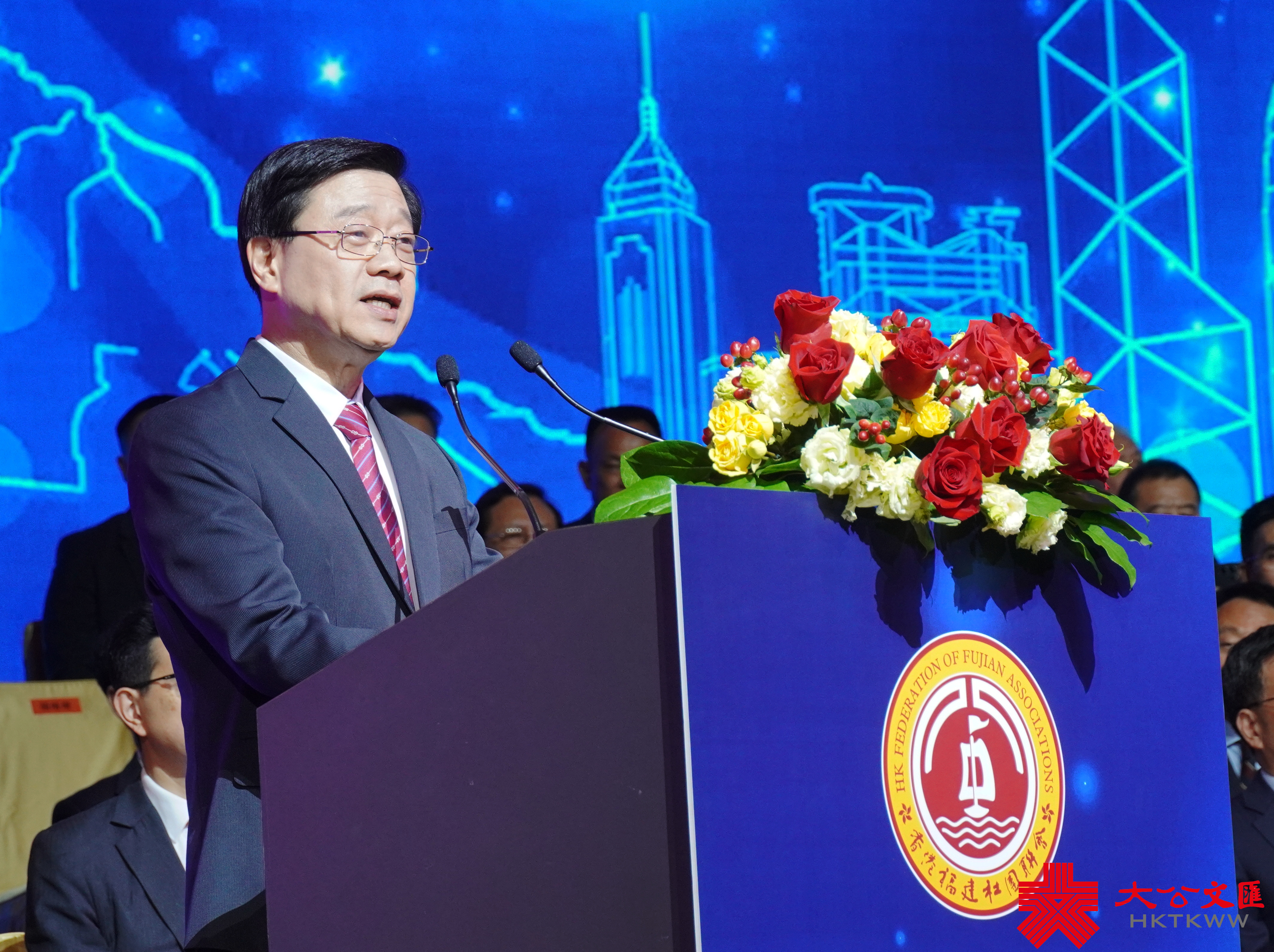 李家超又說,香港是全體居民的共同家園,特區政府全力凝聚社會各界,積極對接國家發展戰略,推動香港融入國家發展大局,貢獻中華民族偉大復興。香港福建社團聯會與特區同年成立,多年來全力團結在港鄉親,服務社區,維護香港和諧穩定。聯會也積極推動閩港人文往來,舉辦不同交流活動,增進兩地年輕一代的友誼,加深香港青年對中華文化的認識是愛國愛港的中堅分子。他相信聯會將一如既往,繼續推動閩港兩地緊密合作,一起為國家和香港的未來貢獻所長。