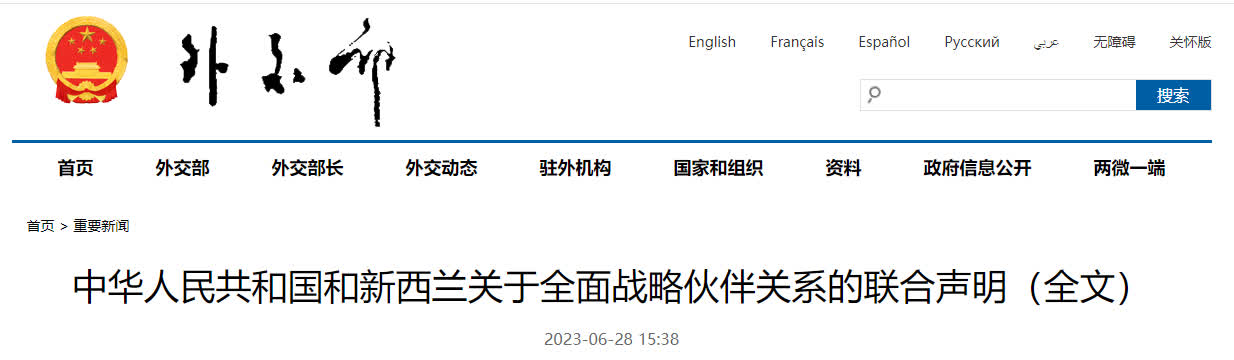 中華人民共和國和新西蘭關於全面戰略夥伴關係的聯合聲明