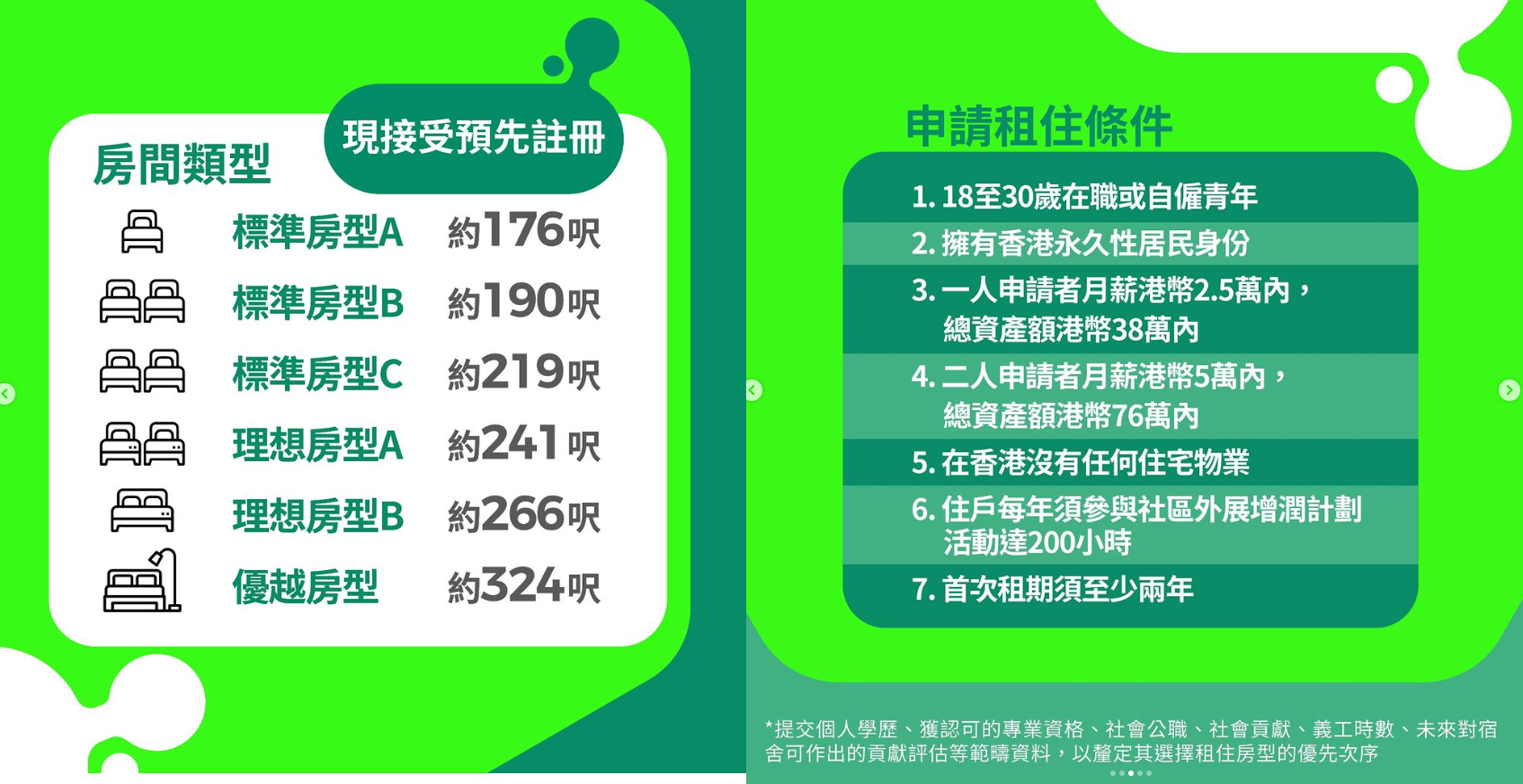 目前,「BeLIVING Youth Hub」提供97間房間,194個宿位,每個單位可容納一至兩人,首次租期須至少兩年。截至今年4月,該間青年宿舍已經收到逾3000份申請,目前入住率達8成。