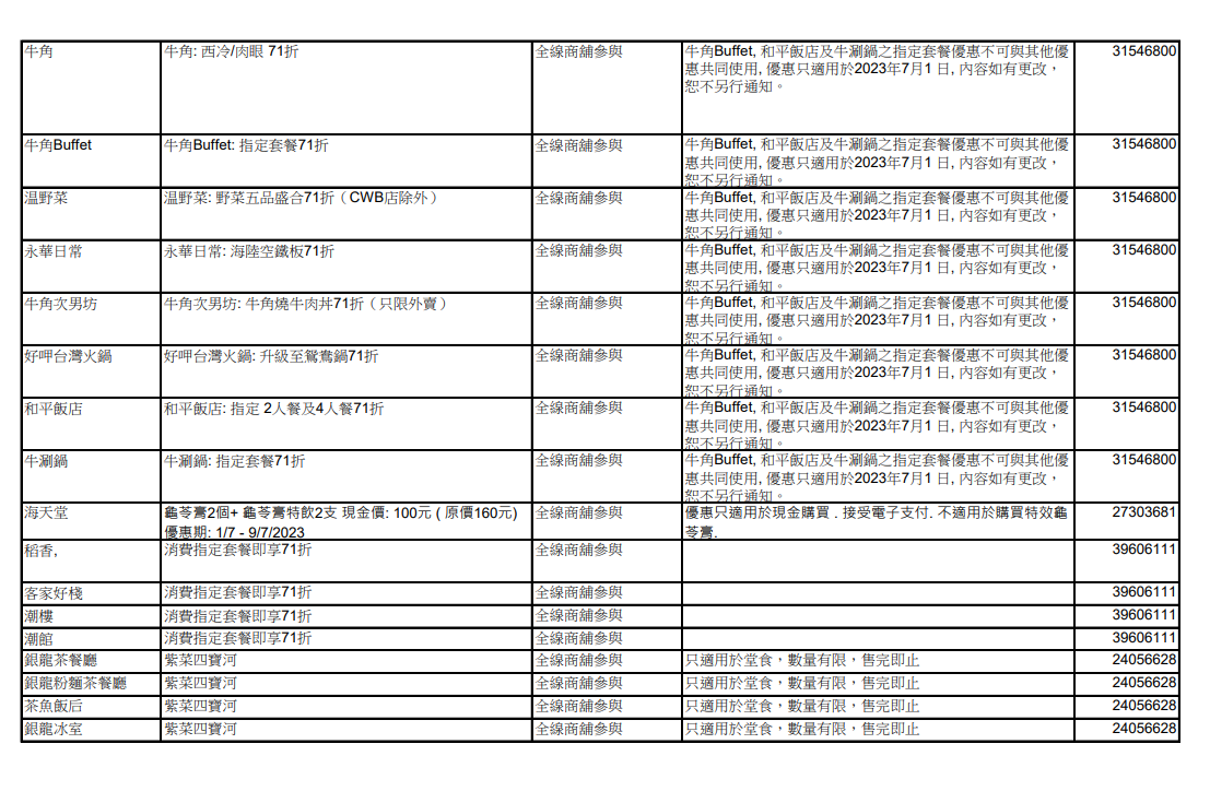 牛角推出的優惠活動是西冷/肉眼七一折,牛角Buffet推出指定套餐七一折,牛角次男坊推出「牛角燒牛肉丼」七一折(只限外賣),牛涮鍋推出指定套餐七一折。詳情見下圖↓↓