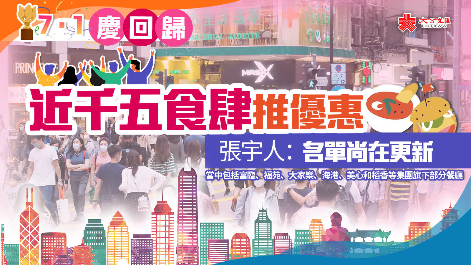 (大公文匯全媒體記者王俊傑報道)為慶祝香港回歸祖國26周年,香港飲食業聯合總會、現代管理(飲食)專業協會、香港餐務管理協會等團體今日(29)舉行記者會,宣傳「飲食業慶回歸優惠活動」。最新共1452間食肆參與,當中包括富臨、福苑、大家樂、海港、美心和稻香等集團旗下部分餐廳。