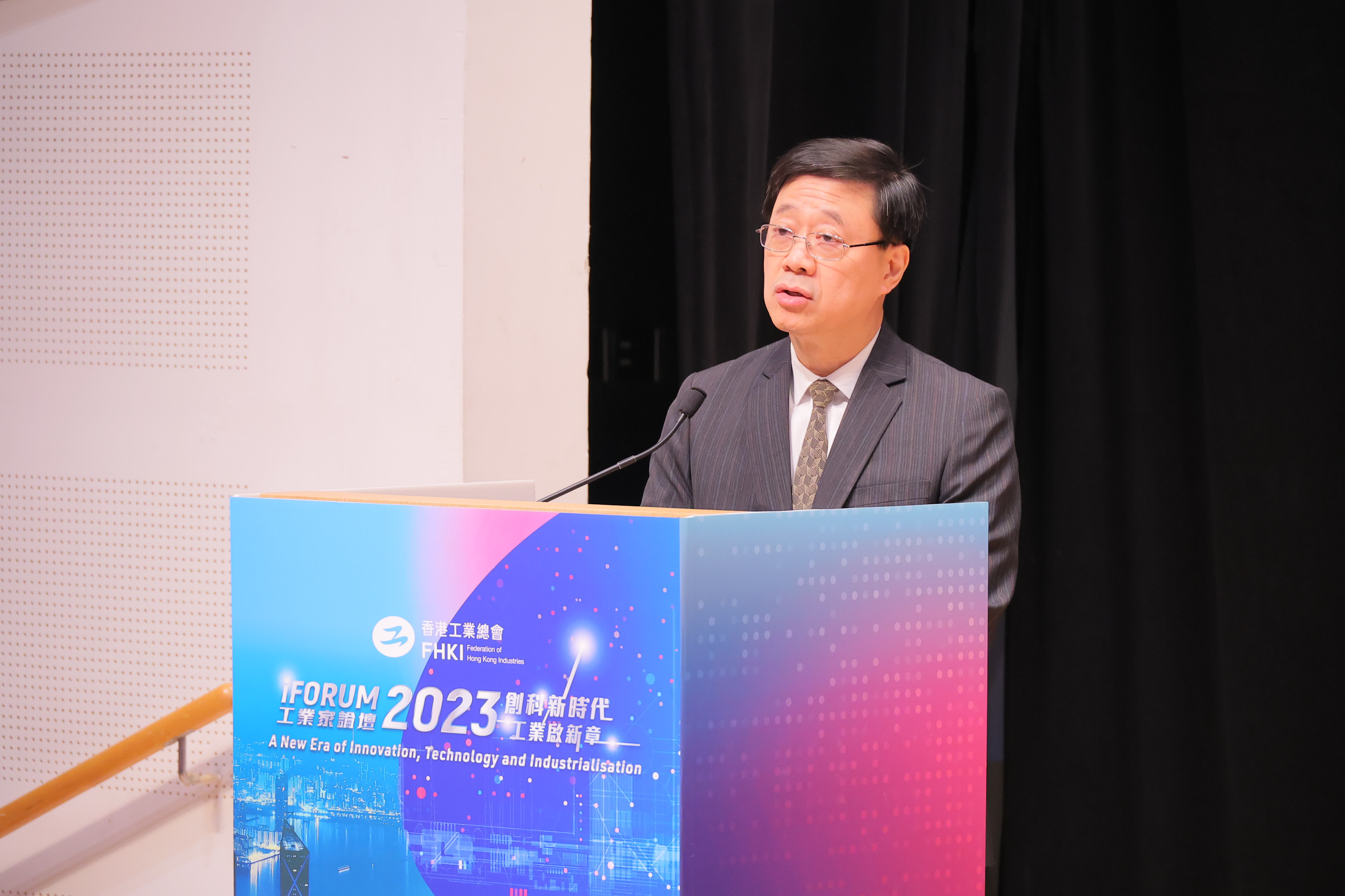 主禮嘉賓行政長官李家超祝願iForum工業家論壇圓滿成功、碩果纍纍:「要成功在香港實現新型工業化,政府與業界攜手合作十分重要。工總六十多年來一直關注香港工商業界發展、引領業界突破不同挑戰。在此,我感謝工總一直推動香港的工業發展,我相信你們未來會繼續積極向政府反映業界意見,為香港未來發展帶來源源不絕的動能,共同為國家高質量發展作出貢獻。」