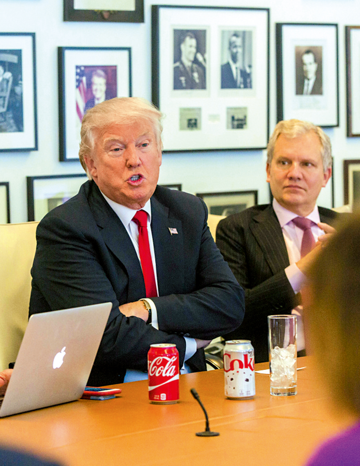 美國前總統特朗普非常喜歡喝可樂。據《紐約時報》報道,特朗普每天要喝下12罐健怡可樂。在2018年9月第73屆聯合國大會的午餐會上,特朗普向世界領導人發表祝酒詞,但他的紅酒杯裏裝的是一大杯無糖可樂。