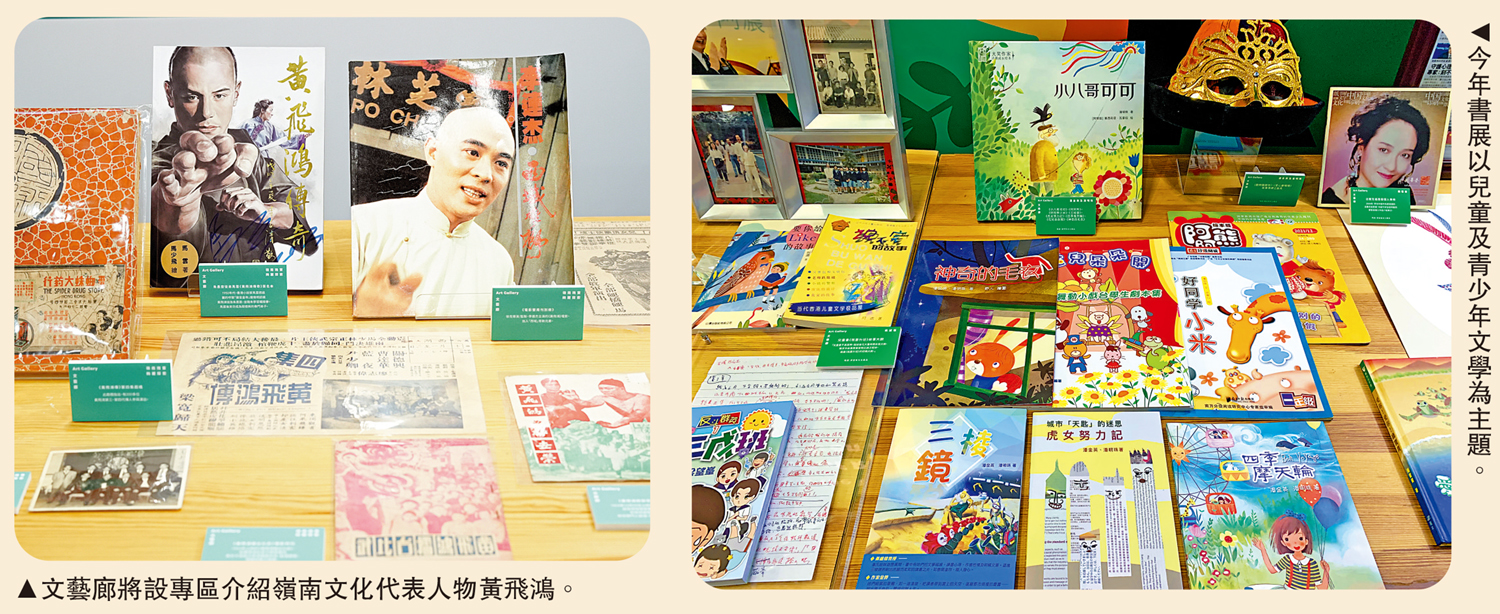 文藝廊展區將與香港書法家協會合作,展出名家書法作品,亦會展出屬於非物質文化遺產的廣彩陶瓷。大會將設專區介紹嶺南文化的代表性人物黃飛鴻。五六十年代的黃飛鴻電影,對源自佛山、廣州的嶺南風俗有詳細呈現。展區內亦會展示有關黃飛鴻的書籍、武術雜誌、電影特刊、珍貴劇照等,透過其生平為觀眾介紹嶺南的武術及歷史。