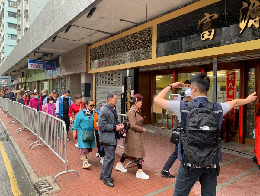 內地入境旅行團重臨,旅遊業重現生機,但疫前受詬病的亂象也故態復萌。今年3月,新聞畫面不斷出現大量團友聚集在土瓜灣及紅磡一帶街頭,由排長龍等候用膳,到公廁門口站着食「兩餸飯」等,引起各界關注。為解決這一問題,政府第一時間「拆彈」,政府、旅監局、旅遊業界、飲食業代表等開會提出緩解措施,包括分流團客,旅遊巴限時限點上落客,避免堵塞行人路及馬路,初步收到成效。