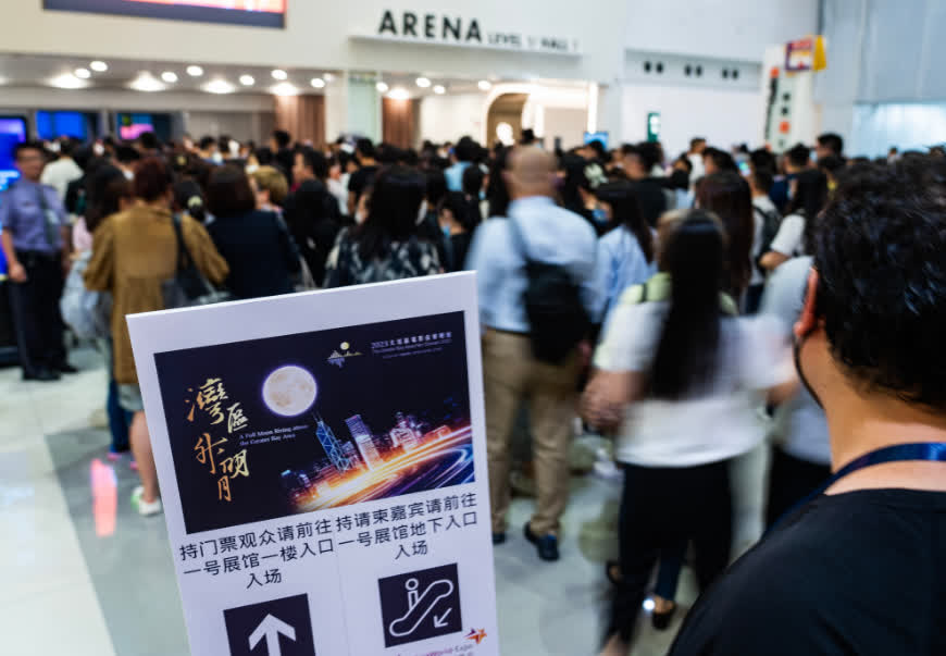 演出現場觀眾人數眾多,男女老少各年齡層皆有,既有白髮蒼蒼的老人,也有年輕的青少年。市民張先生昨晚在現場觀看整齣晚會。他表示:「在香港回歸祖國26周年之際,有幸能夠參加『灣區升明月』晚會,現場氣氛熱烈,觀眾們的掌聲歡呼聲此起彼伏,經歷了疫情,市民們的熱情終於得以釋放,曾經那個繁華熱鬧的東方之珠又回來了。」