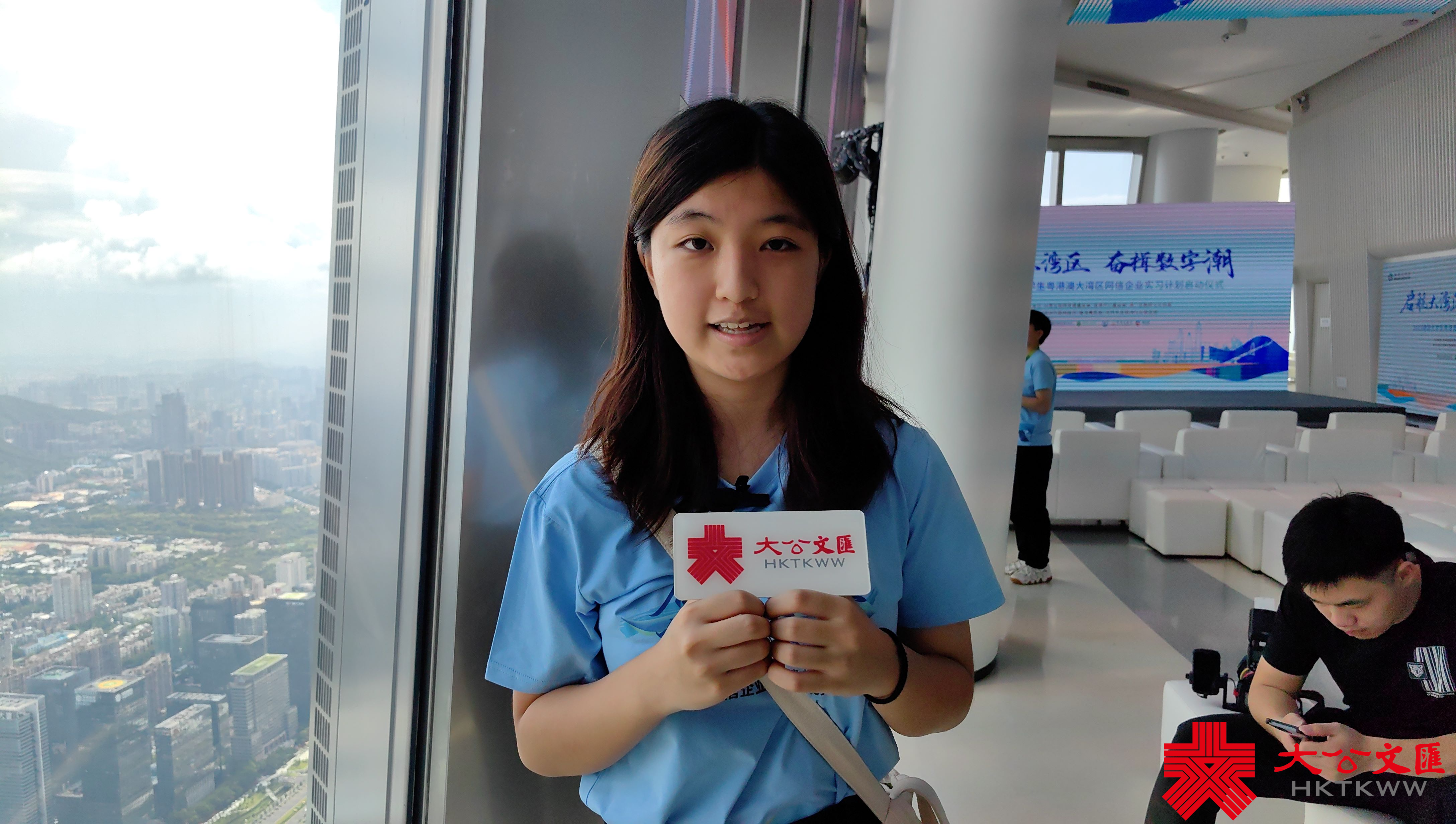 香港實習生代表陳曦在發言中稱,「深圳給我的感覺是一個擁有先進科技又同時充滿年輕活力的城市。作為大灣區的一員,我能感受到深圳和香港緊密相依但又各有特色。希望在為期一個月的實習期中,我們能更加切身感受到兩者之間的不同和兩者所需所長以及可以融合發展之處,能夠發掘到深圳更多不同的面貌,並更深入了解深圳這座城市的發展和走在科技前沿的科創企業,加深對祖國的認識。」