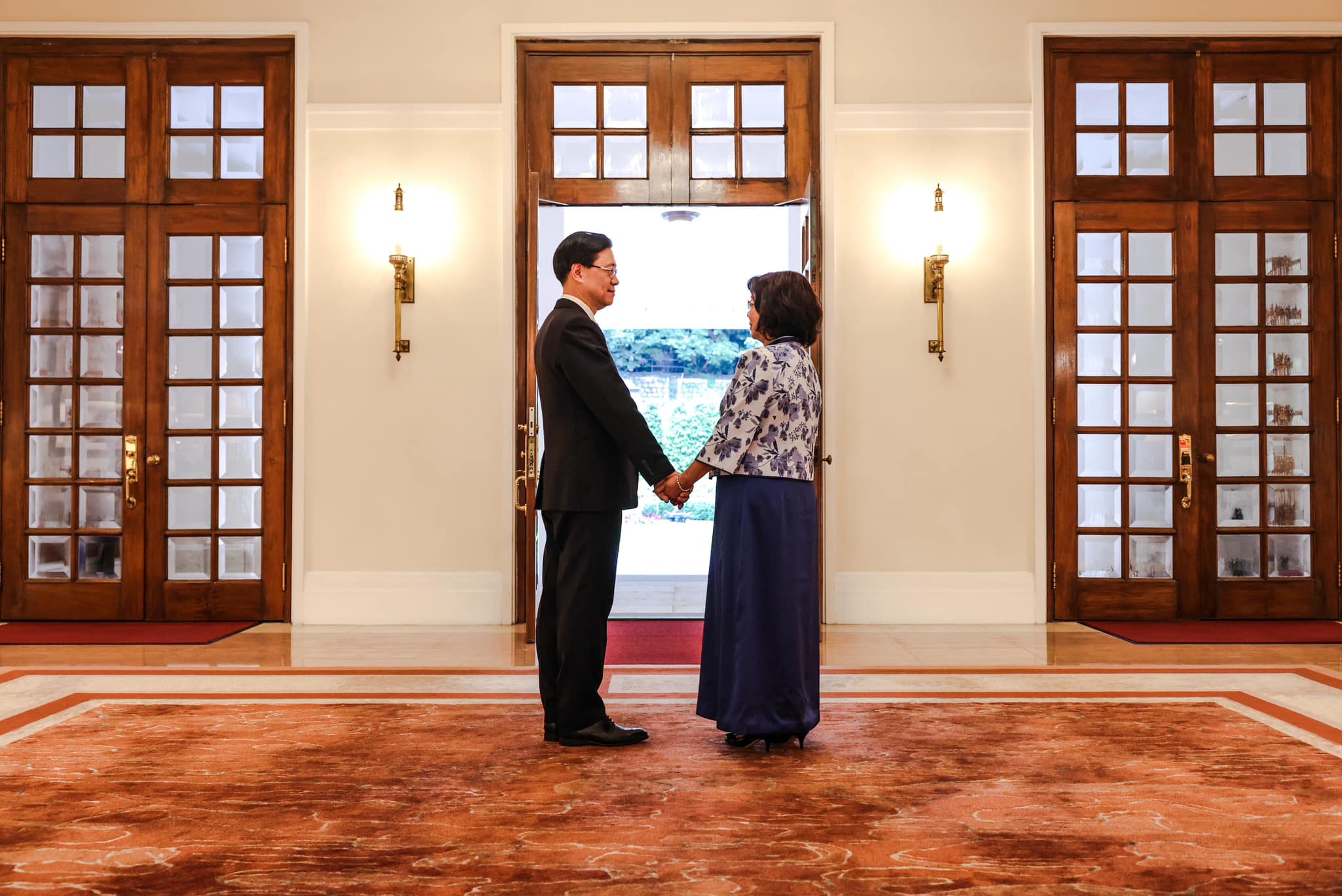 大公文匯全媒體報道,今天(7月1日)是香港回歸祖國26周年的大日子,李家超在社交平台上曬出與太太甜蜜牽手照,表示太太麗嬋穿了一身中式華服,與自己一同出席慶祝回歸活動。