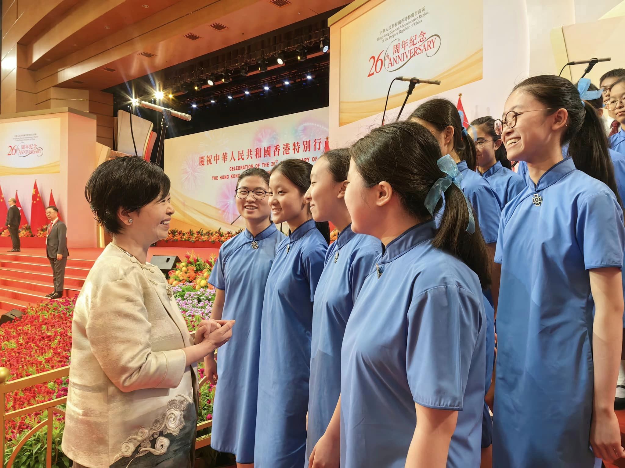 何永賢提到,在活動中還發現自己中學母校合唱團的師弟妹在場獻唱國歌,她立即與一眾校友上前合照,指這也是令人尤其暖心的片刻。