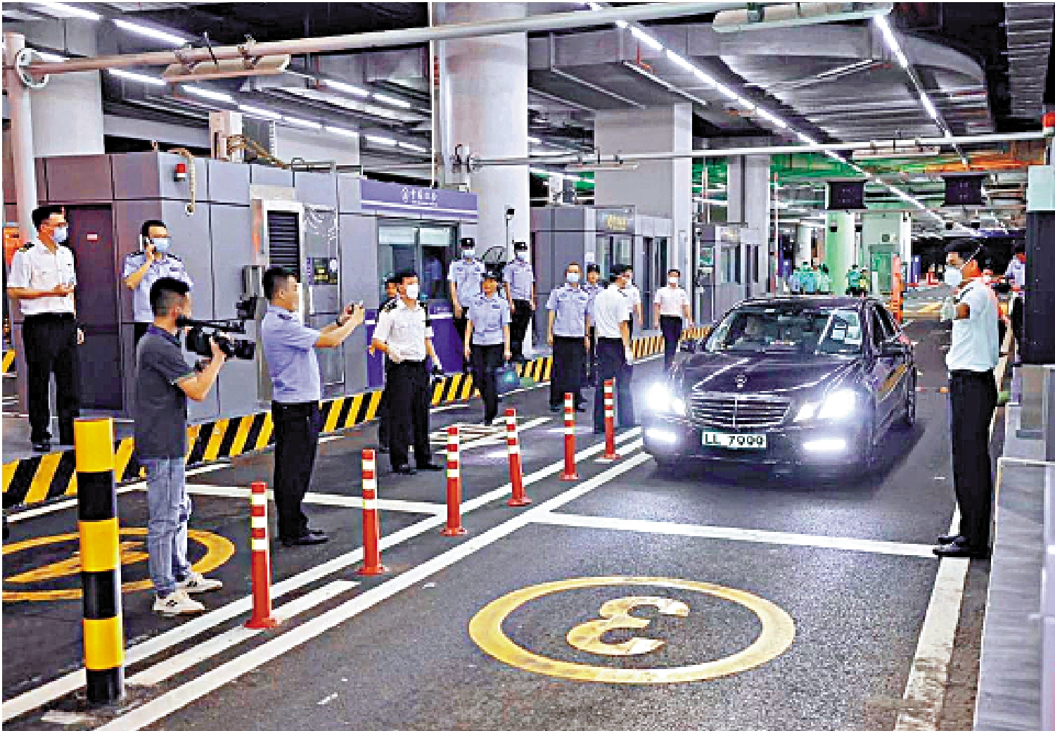 「系統放行,請通行!」在1日凌晨的港珠澳大橋珠海口岸,伴隨着粵語電子音指引,李先生駕駛的香港機動車經過車體檢查後,駛入「一站式」查驗通道。司機無需下車,就在駕駛室進行刷卡、摁指紋、人臉識別,1分鐘完成邊檢和海關的入境手續辦理。
