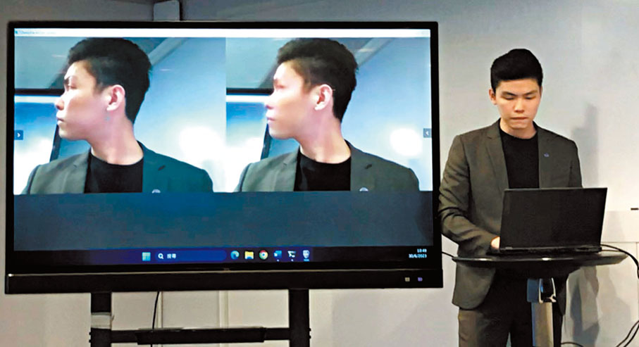 警方日前向記者演示利用人工智能「變臉」的手法,以數星期時間搜集及模擬到的一名警司臉部資料,將其套用在另一人身上並作實時視像聊天,可見因數據不完善,畫面中被偽冒人物的眼神、口型出現不協調,臉部邊緣線不自然。