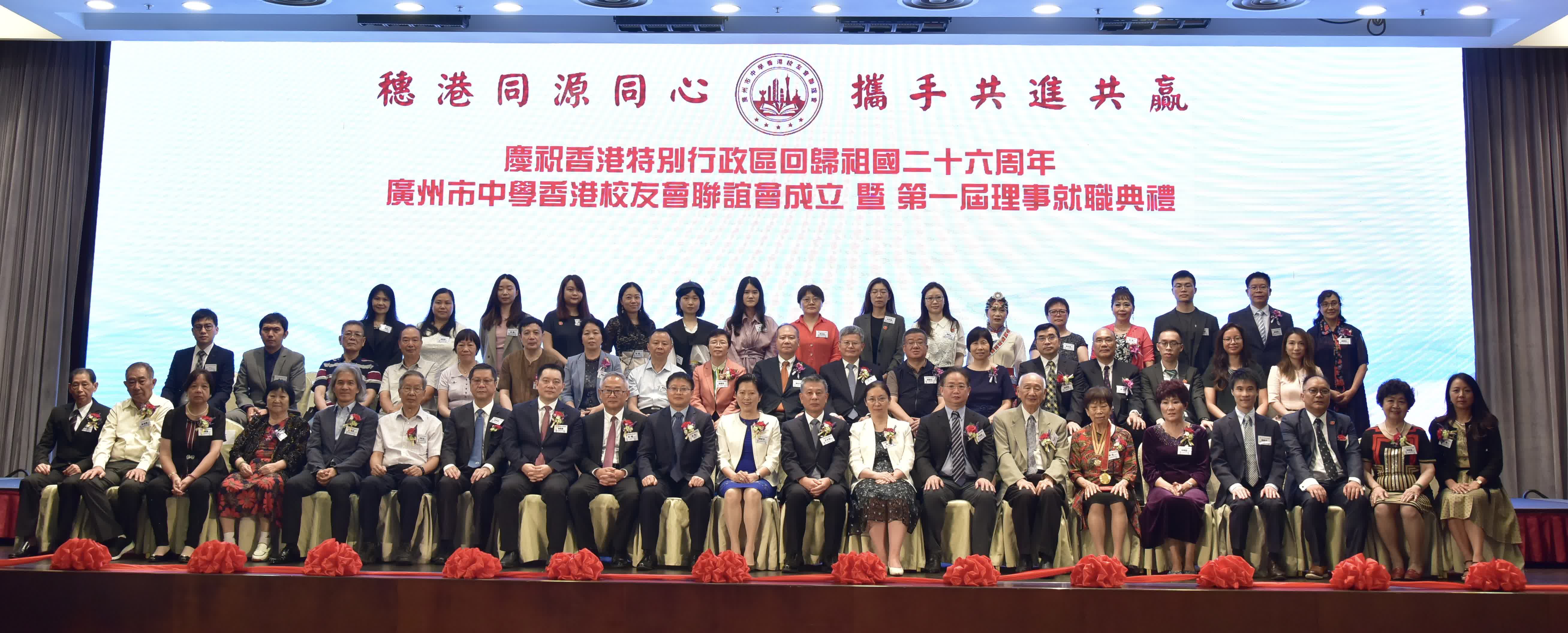 7月2日,廣州市中學香港校友會聯誼會(以下簡稱「中校聯」)假龍堡國際賓館胡應湘堂舉辦「穗港同源同心 攜手 共進共贏」中校聯成立暨第一屆理事會就職典禮。是次就職典禮吸引超過700名來自廣州八所著名中學旅居香港校友會的校友成員出席活動,現場氣氛熱烈。