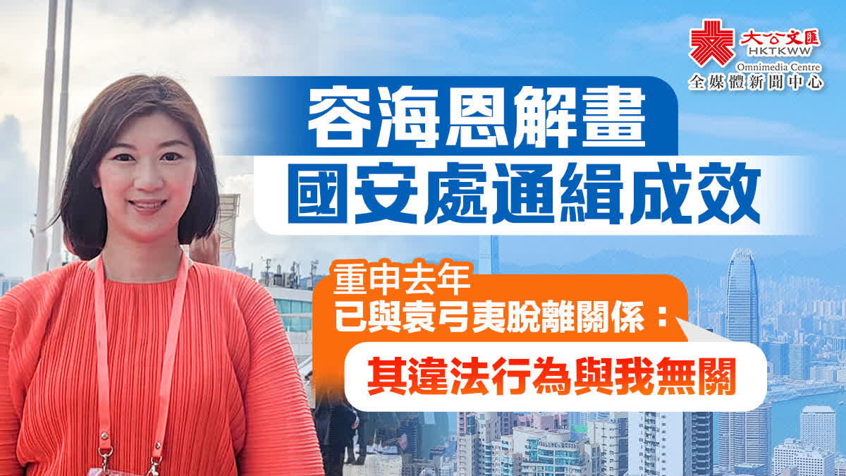 容海恩知悉外界仍關注其中一名被通緝人士袁弓夷與其的關係,特此重申,「我已於2022年8月登報宣布與袁弓夷脫離關係,因此他的行為與我無關」。容海恩並再次強調,任何人士均不得危害國家安全,而袁弓夷在海外籌組所謂「香港議會」,推動以「公投」推翻中央和特區政府,又要求制裁香港法官,有關行為已涉顛覆國家政權罪、勾結外國或境外勢力危害國家安全罪。