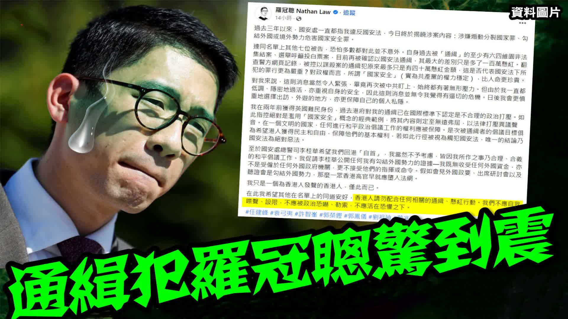 羅冠聰在社交平台表示,連同名單上其他七位被告,恐怕多數都對此並不意外。「自身過去被『通緝』的至少有六四維園非法集結案、選舉呼籲投白票案,目前再被確認以國安法通緝,其最大的差別只是多了100萬懸紅。」