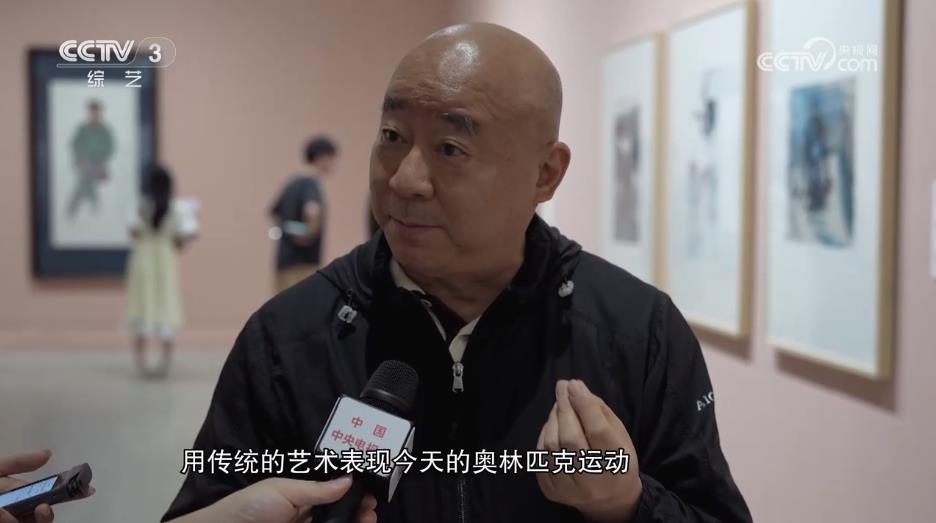 中國國家畫院國畫專業委員會副主任 范揚:這個我們是包攬了金銀牌的,我這個畫面畫出了寬闊度,正在彎道搶先的一個鏡頭,包括這些線,在我們中國繪畫裏叫速度線,正好反映速滑。用傳統的藝術表現今天的奧林匹克運動,這就是我們的一個探索。