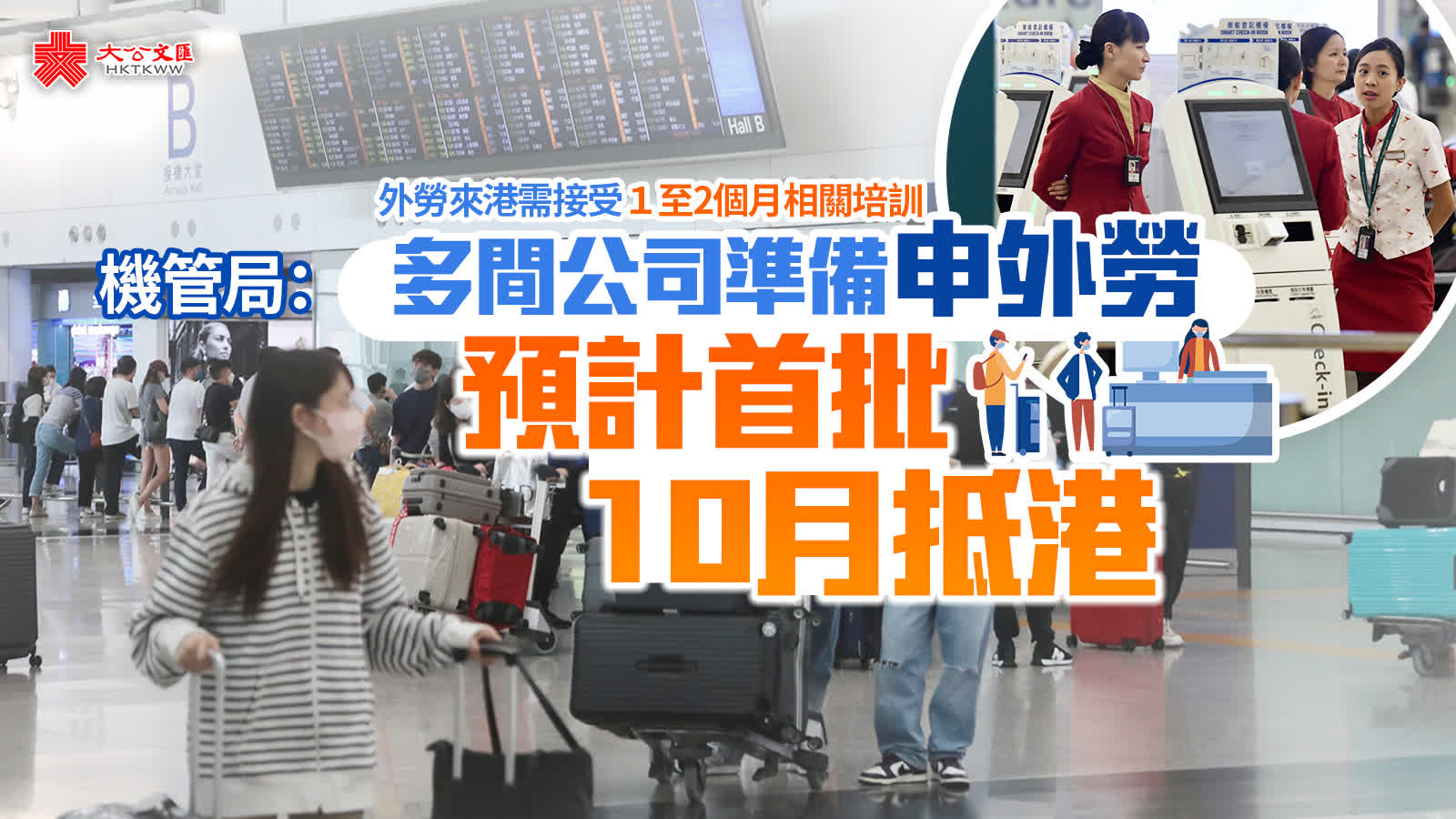李佳蕙透露,現在機場多間公司都準備好申請外勞,正待政府開放申請。外勞來港需接受1至2個月相關培訓,預計首批外勞將於10月抵港,正在研究外勞交通津貼等細節。