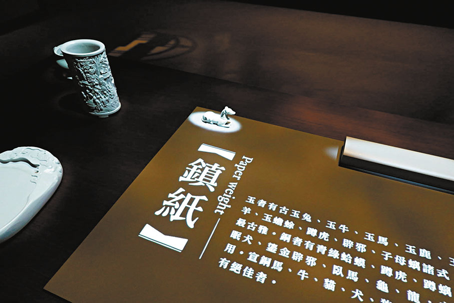 清雅脫俗展區藏品比較含蓄內斂,講求品味,多中國書畫。展區代表人物文震亨是文徵明的後代,其著作《長物志》(長,讀音「丈」)談論生活中「多餘無用」但可提升生活品味之物,被奉為清雅生活和品味的必備指南。在設計成書齋的展廳內,觀眾可以科技互動,動動手指,認識文房內各種物品。