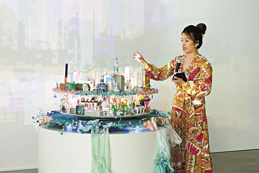 阮家儀畢業於香港浸會大學視覺藝術系,她的藝術創作側重城市文化和「鄰舍」主題,凸顯搜集得來的物件的象徵意義,並將其轉化成獨特的藝術語言。今次她的《登陸何處》結合裝置藝術與投影,作品的兩層旋轉圓盤上布滿了過去由香港生產出口的小玩意,在燈光下徐徐轉動,打造出五彩夢幻的香港歷史記憶。阮家儀透露,這之中年代最悠久的物品是一支1940年香港出產的牙刷,她說:「我很喜歡收集舊物,每件舊物的背後都有它自己的故事,於是把這些曾經從香港出口的塑膠玩具置於圓盤上轉動,物品的影子投射在牆面,配合以物品出口當年香港的建築與景象。整件藝術品也呼應着別館展廳落地窗外,現下維港的景觀。」