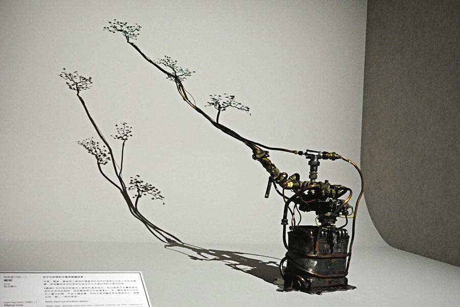 四大展區分別對應冒險開拓、力臻完美、清雅脫俗和時尚敏銳的不同氣質,從古代文物,到當代藝術,背後都指向了藝術之美。冒險開拓展區以吳冠中為代表藝術家,展出他筆觸粗放大膽的《海風》,鄧慶燊指這呼應了藝術家本身冒險開拓,為中國畫開拓出新境界的藝術經歷。同區展出的焦點藝術品是香港年輕藝術家林佑森的《鐵樹》,由工業廢棄材料拼湊而成,卻衍生出具有中國畫筆墨詩意的斜枝,作品置於斜台之上,彷彿令人走入畫卷中。