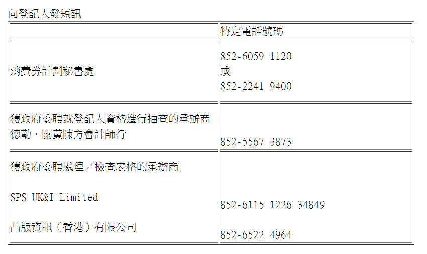 向登記人發短訊的特定電話號碼: