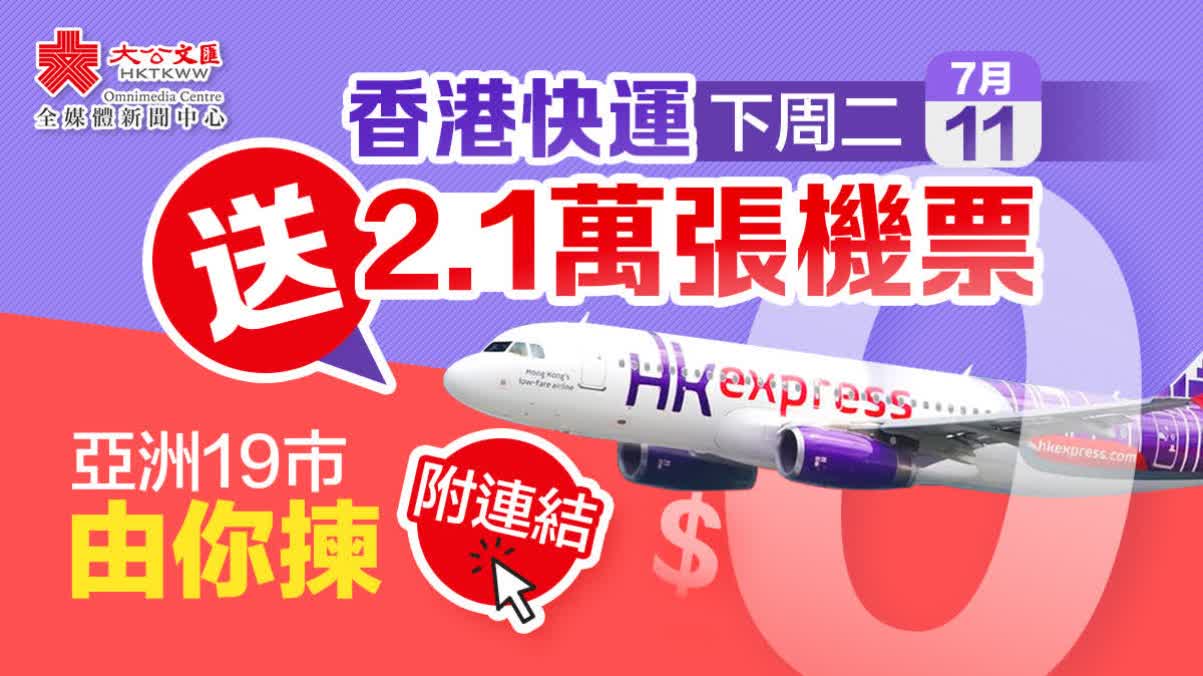 大公文匯全媒體報道,香港快運送機票喇。由7月11日(下周二)開始,香港快運將會送出21626張由香港國際機場贊助的免費來回機票予通常居住於香港人士,數量有限,先到先得。活動時間由7月11日至24日止。免費機票旅遊期限由今年8月1日至2024年5月31日,旅客須於2024年5月31日完成旅程。