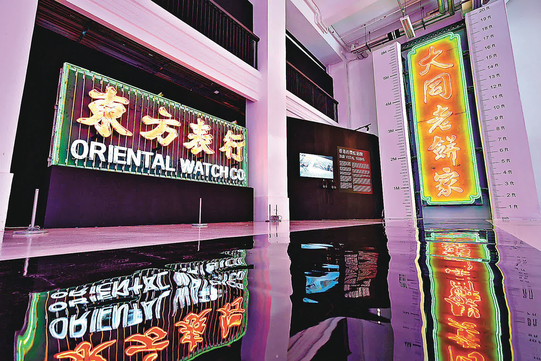 本次活動由霓虹交匯協辦,展覽共分兩部分,橫跨大館內兩個不同的空間。從大館01座複式展室開始,觀眾可以欣賞到超過20個霓虹燈招牌,包括經典的「大同老餅家」「南昌押」等,感受其重新綻放出的絢麗光芒。