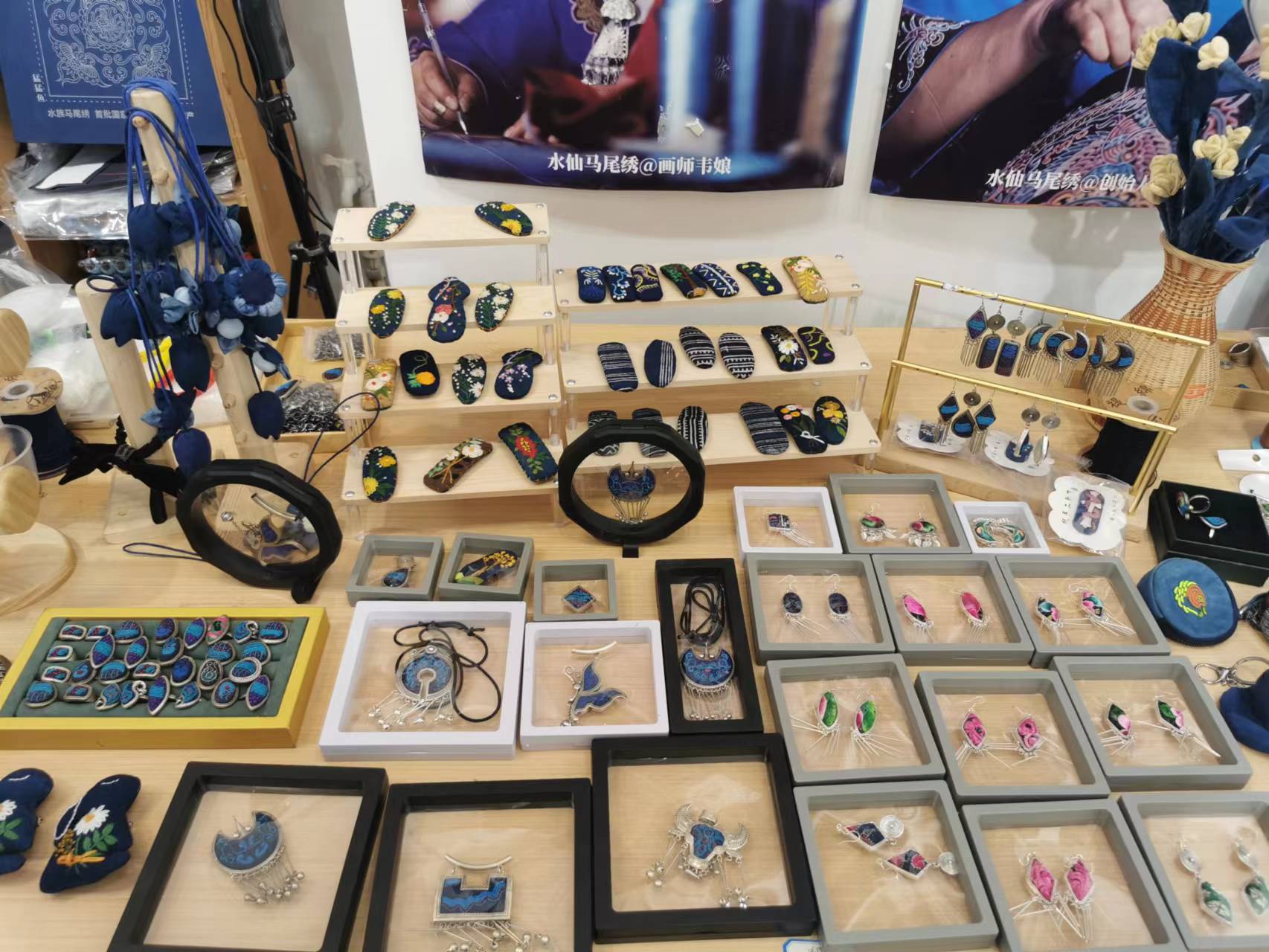 青雲路85號是素有貴陽潮玩新地標的「青雲市集」的北門,從這裏折進去,幾步路左拐,就是人頭攢動的貓街。一家經營貴州水族世界「非遺」項目馬尾綉的店舖,令李家超眼前一亮。水族馬尾綉是一門傳承上千年的技藝,其獨特之處在於用絲線纏裹馬尾用於刺繡,針法有平綉、空心綉、挑綉、結線綉、螺形綉等,綉品呈現淺浮雕感。一幅馬尾綉作品,往往表現一個願望、講述一個故事、蘊含一段歷史,具有豐富的文化內涵和獨特的藝術魅力。水族馬尾綉工藝於2006年被批准為中國第一批國家級非物質文化遺產,被譽為中國刺繡的「活化石」。