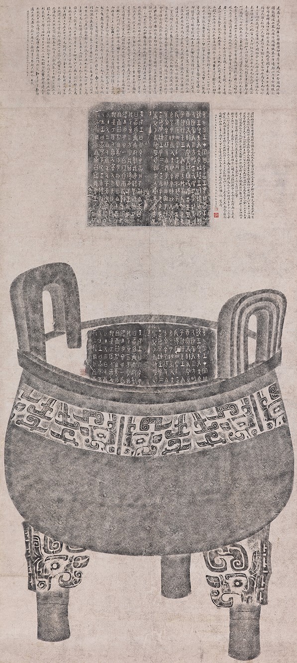 清代金石學興盛,文人學者們在金石研究與互相交流中,拓本賞玩與題跋蔚然成風。金石拓制技法愈發精進,所拓器物的種類和範圍也不斷擴大。伴隨全形拓等新技法的出現,傳拓擺脫了以往平面上無法表達立體器形的束縛,讓傳拓作品不僅僅作為內容複印的載體,也成為藝術創作的主體。其中不乏技法的探索,和以傳拓與繪畫等結合進行二次創作,產生了獨特的藝術效果。