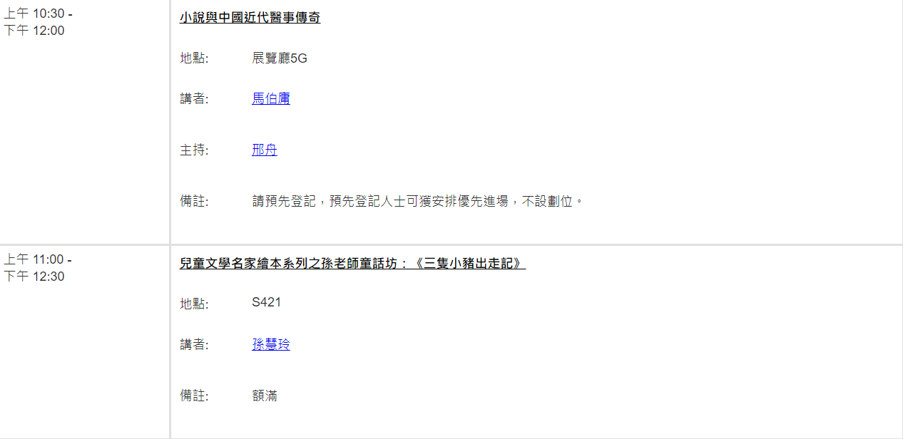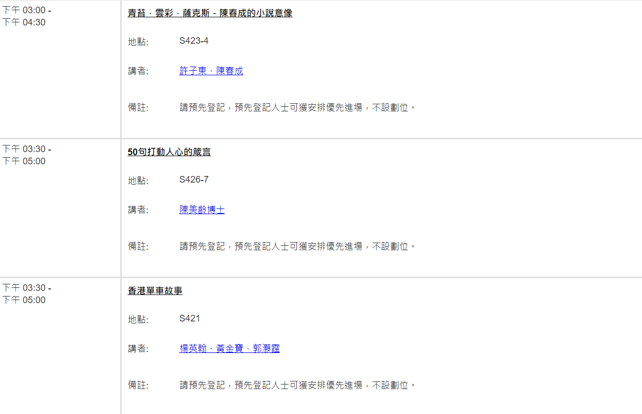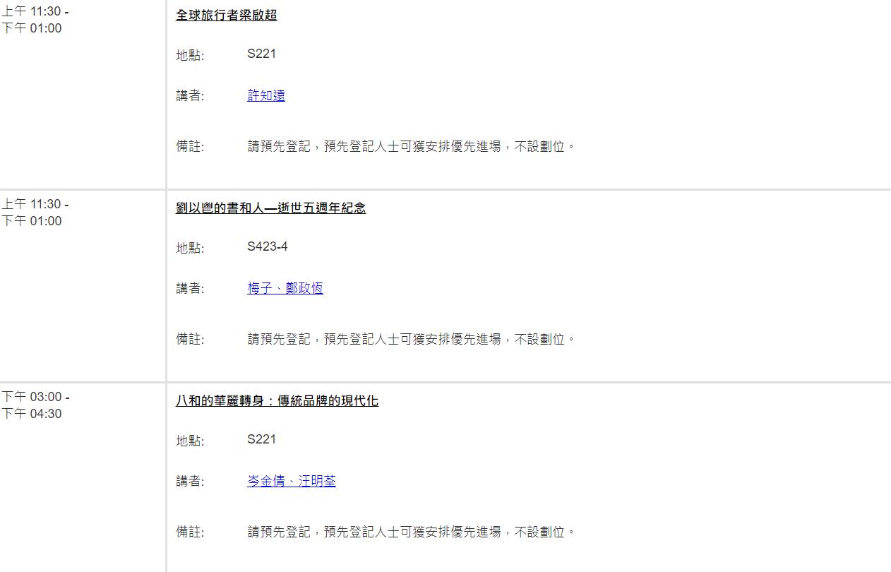 記者注意到,由於更換了更大的場地,大部分講座目前仍未額滿,先前錯過預約的書迷朋友可進行預約。(點此預約登記)