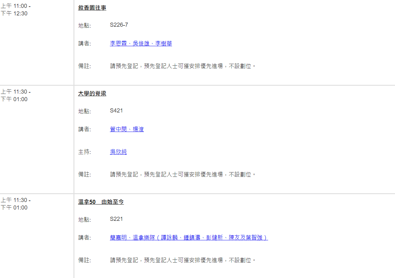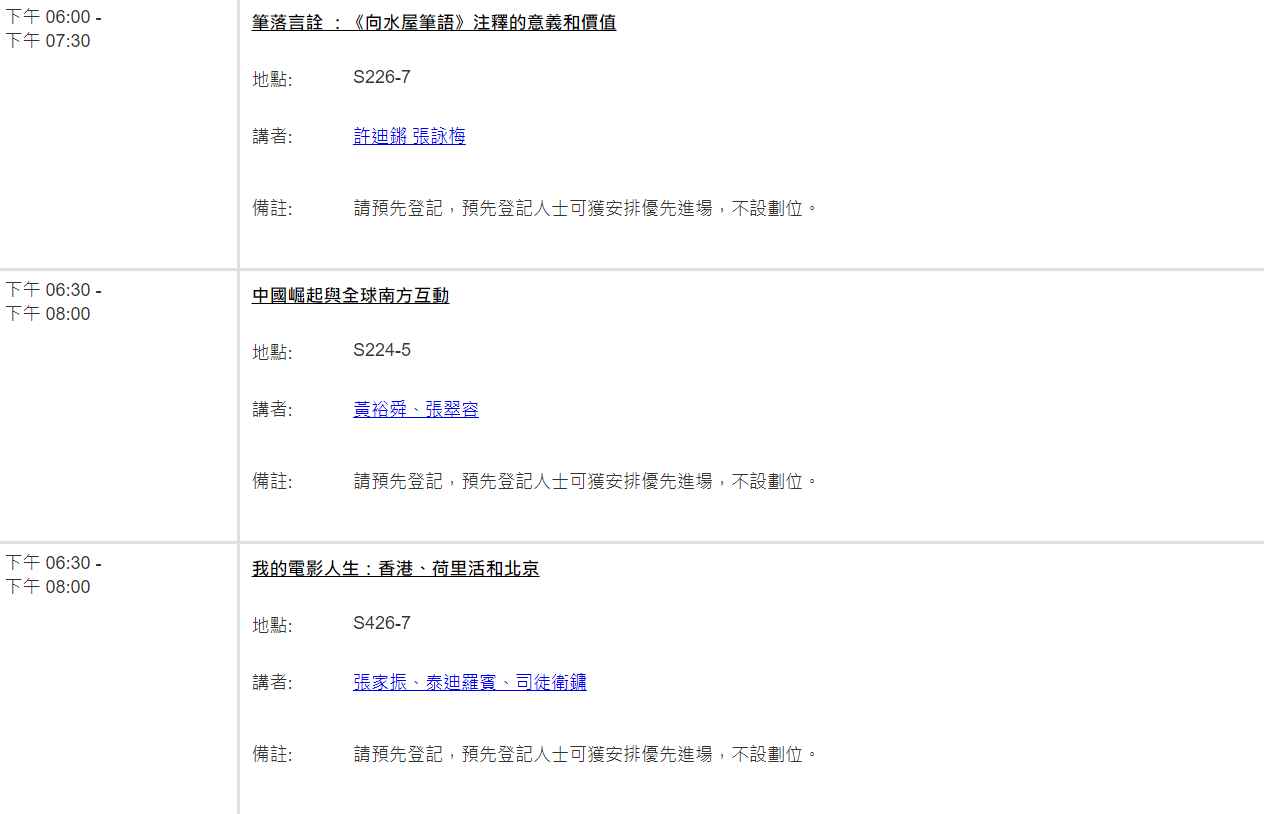 截至9日,部分研討會/ 講座最新地點: